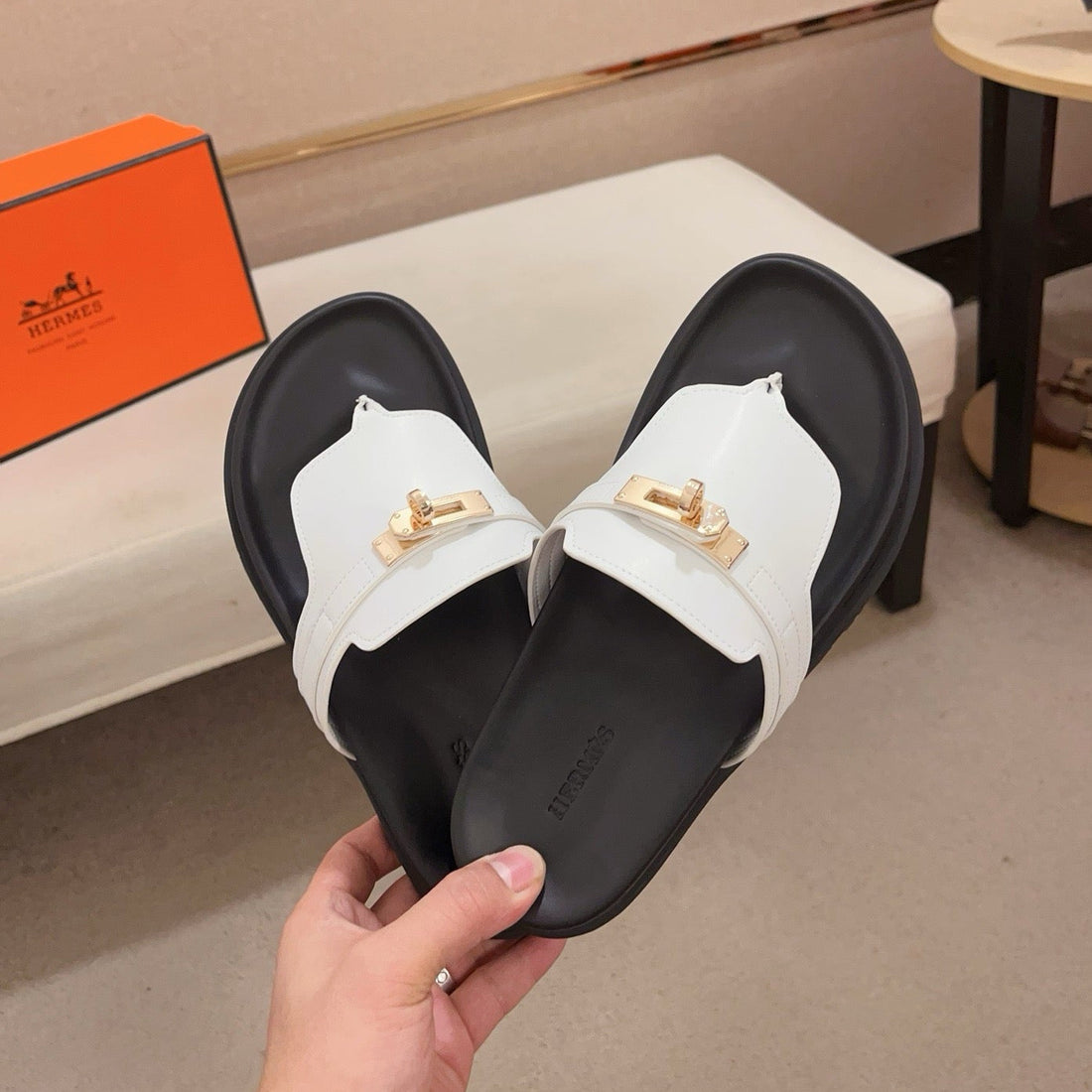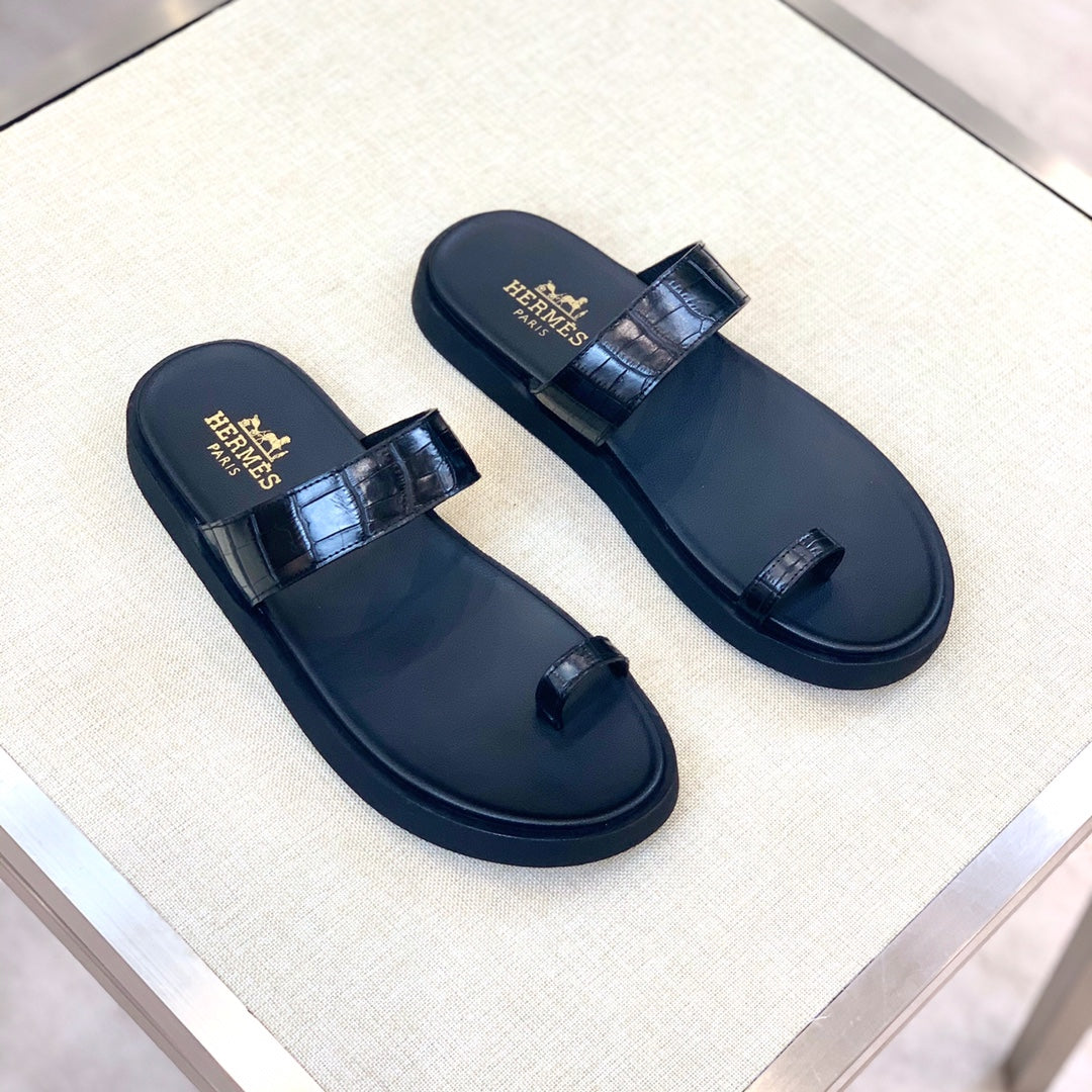 HM Men's Thong Sandals Black Rubber Sheepskin 561667