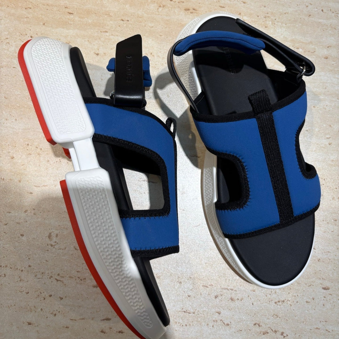 HM Men's Gate Sandal Blue Calfskin Printed Fabric 655431