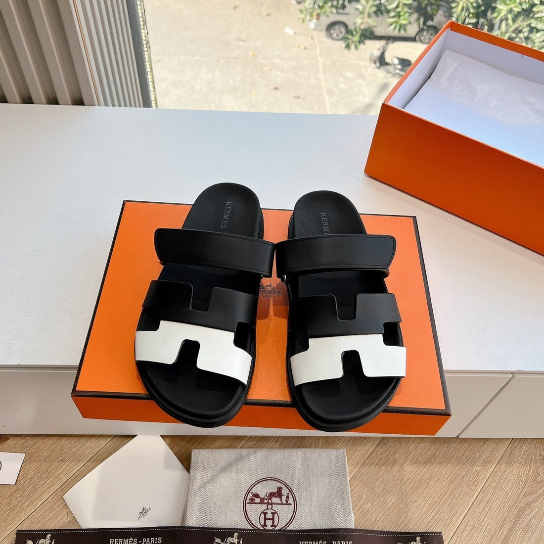 HM Chypre Sandal Black Mix White Calfskin 202814