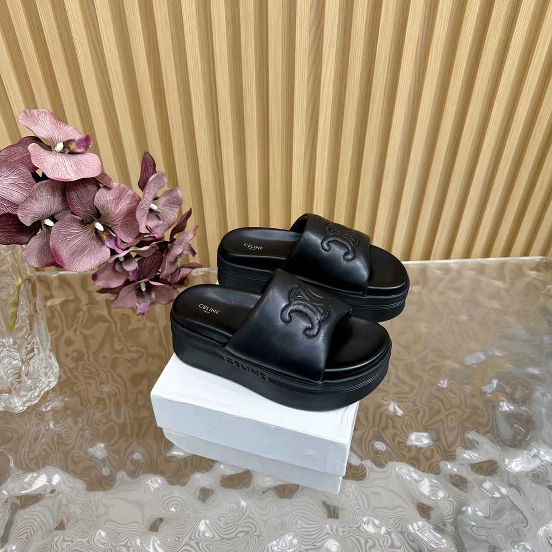 Celine 25C Slippers Black Fabric with Calfskin 238155