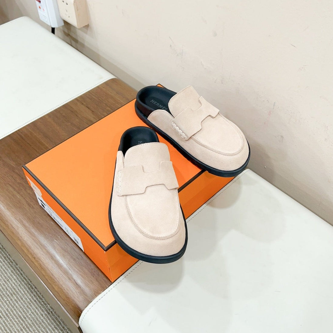 Loro Piana Grey Black Suede Charms Walk Flat Mules
