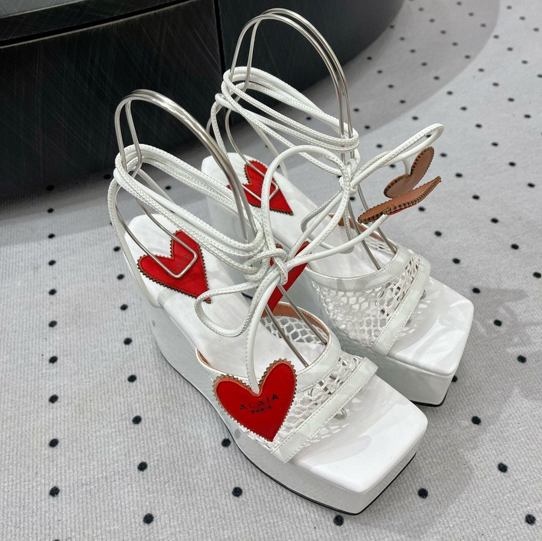 ALAIA LA WEDGE SANDALS IN WHITE PAPER STRAW