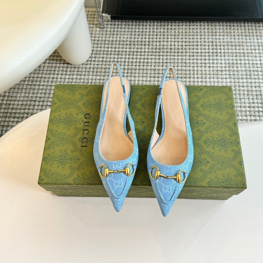 GG HORSEBIT SLINGBACK BALLET FLAT SKY CANVAS