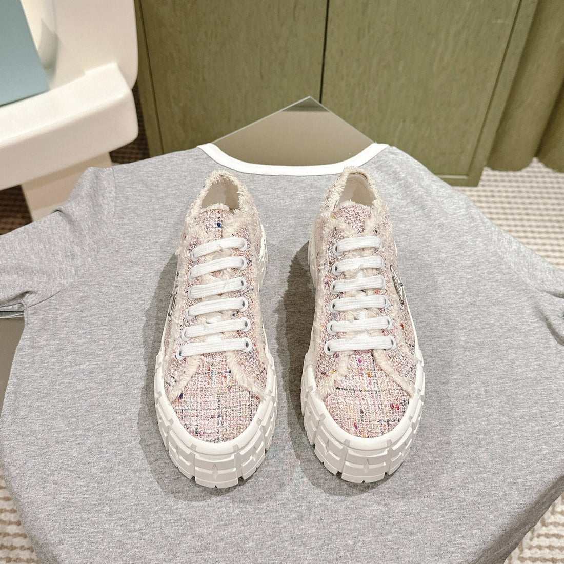 PRA DOUBLE WHEEL RE-NYLON GABARDINE SNEAKERS PASTEL PINK CALFSKIN