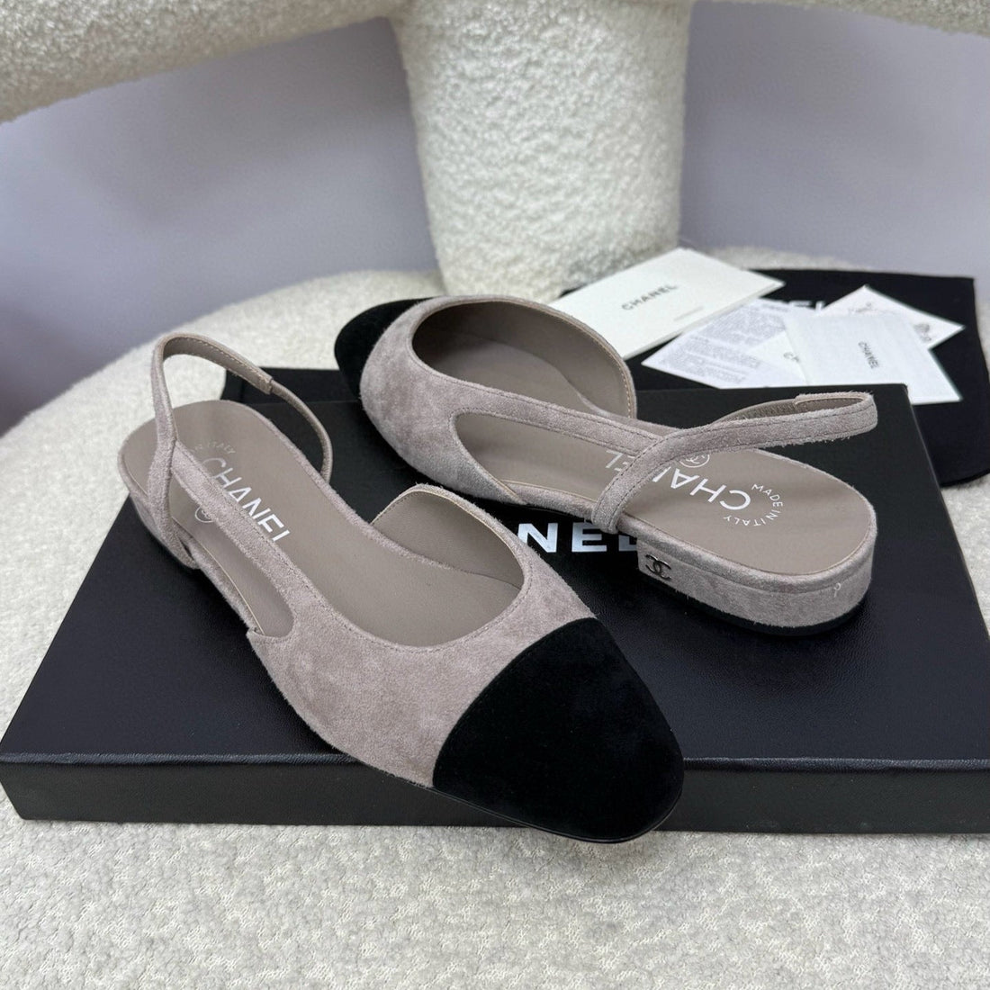 CC 25A Slingback Flat Beige Black Suede