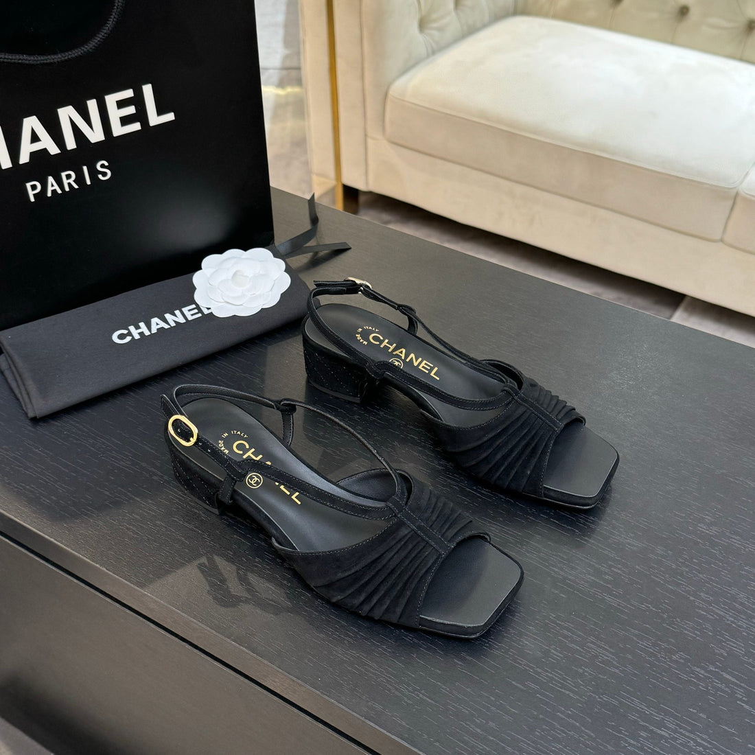 CC 25S Sandal Heel 50mm Black Suede Kidskin