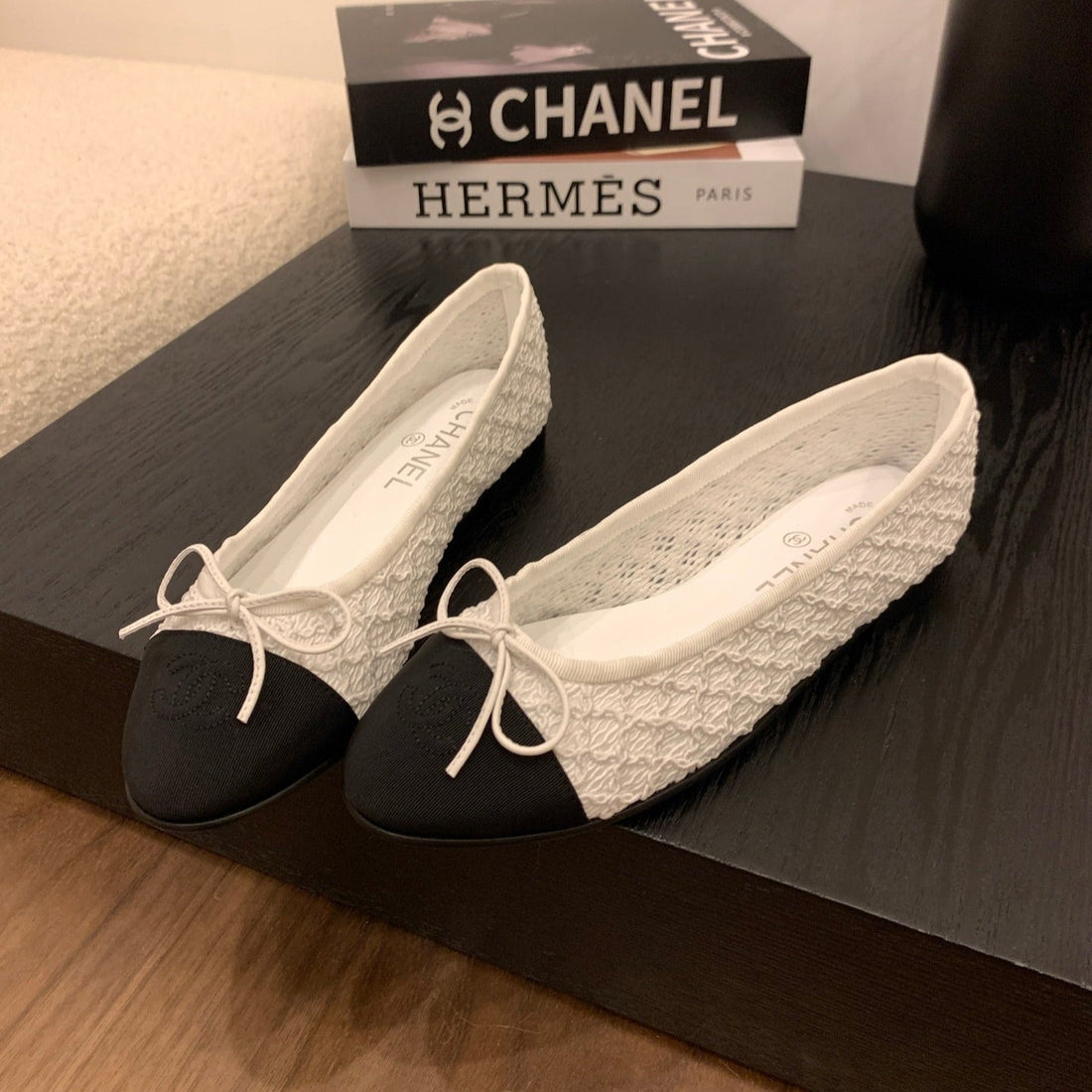 CC 25 Ballet Flat White Fabric Black Grosgrain
