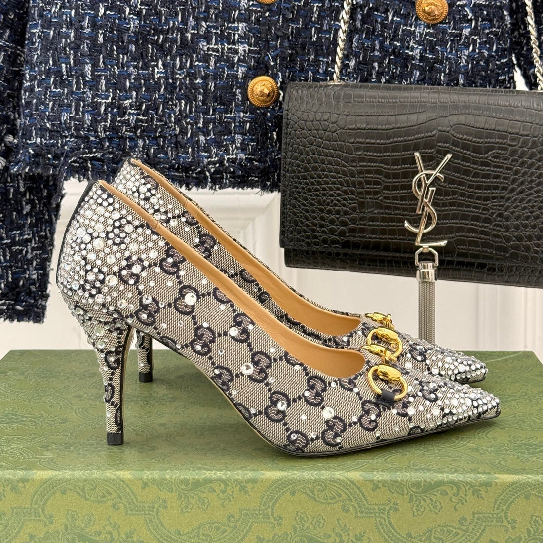 GG Pump 85 Beige Black Ebony Canvas Crystal-Embellished