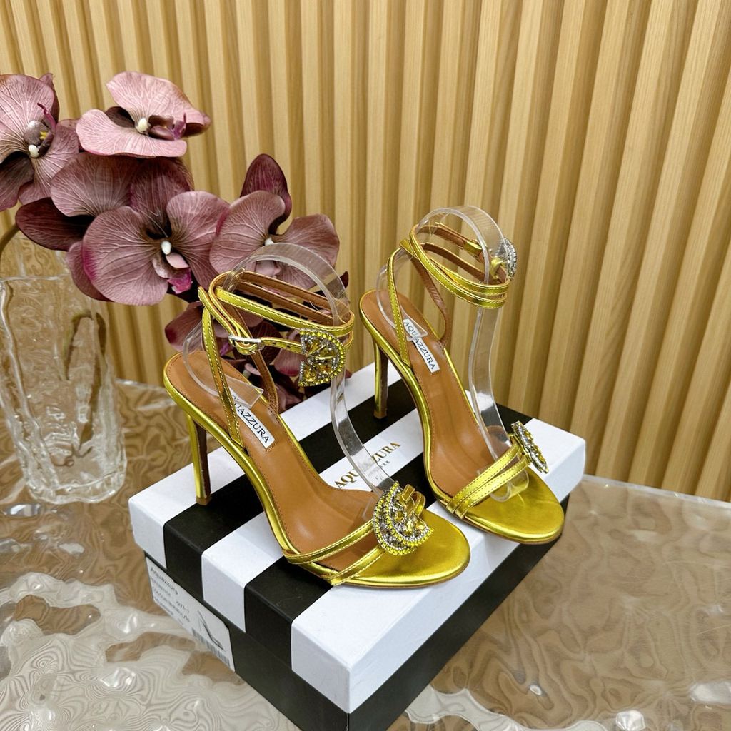 Aquazzura Slingback Heel 10cm Gold Metalic Calfskin