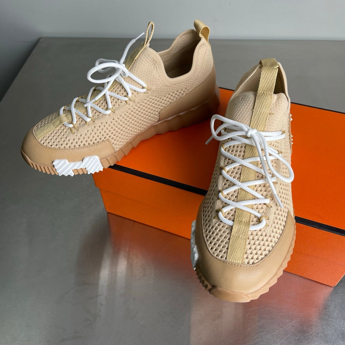 HM Men's 25 Lift Sneaker Beige Mesh Calfskin 703782