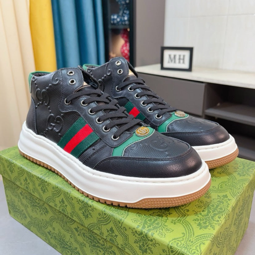 GG Men's Sneaker Black Cowhide Embossed 523163