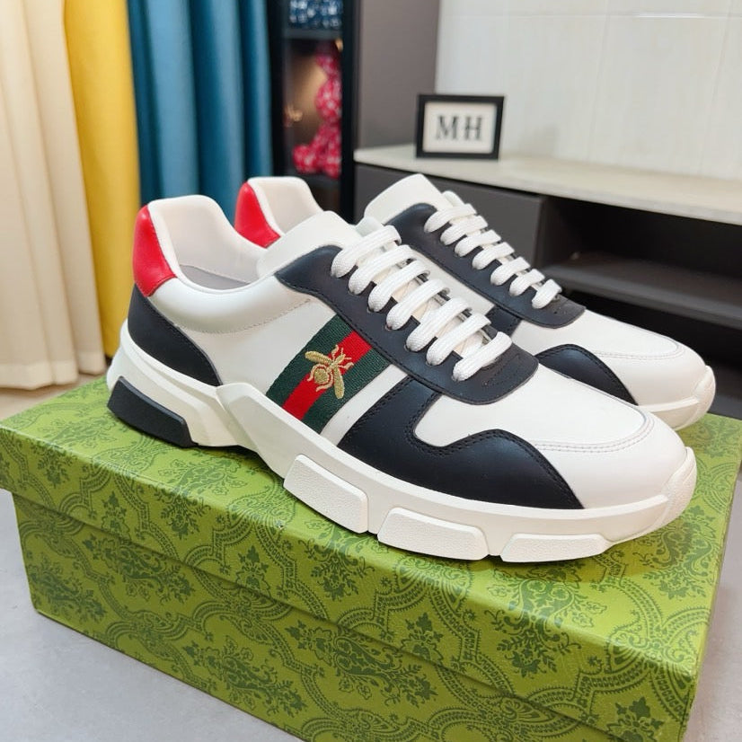 GG Men's Sneaker Black White Cowhide Embossed 523164