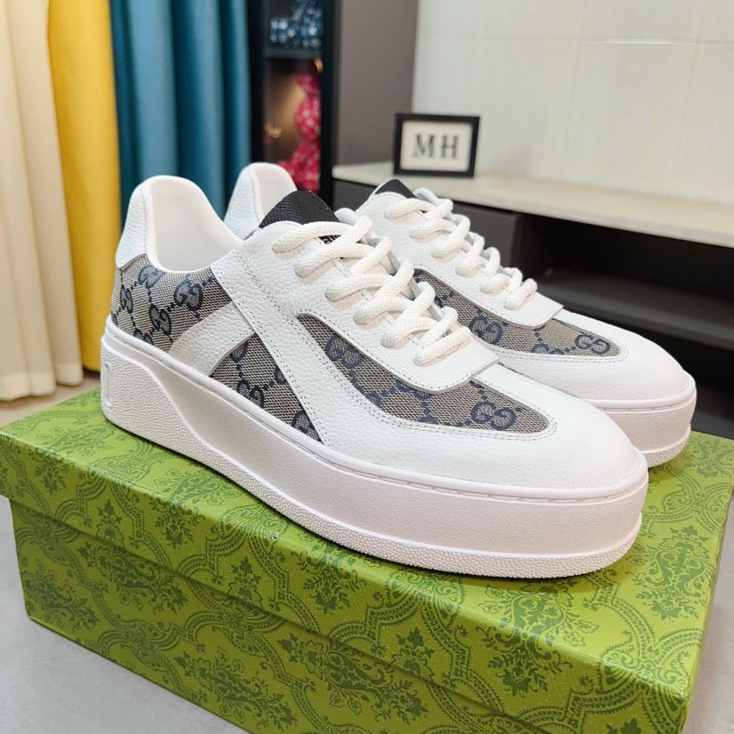 GG Men's Platform Sneaker White Blue Cowhide 523419