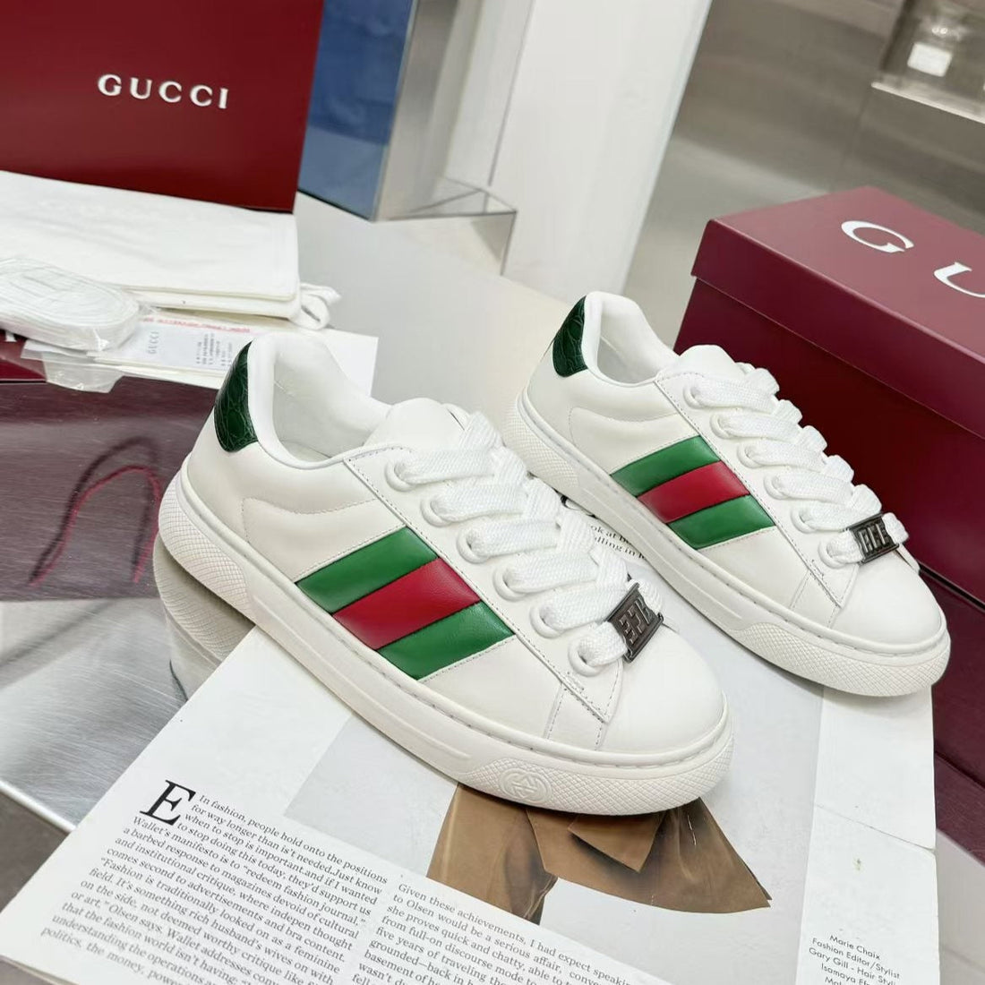 GG Men's Screener Sneaker White Green Sheepskin 574738
