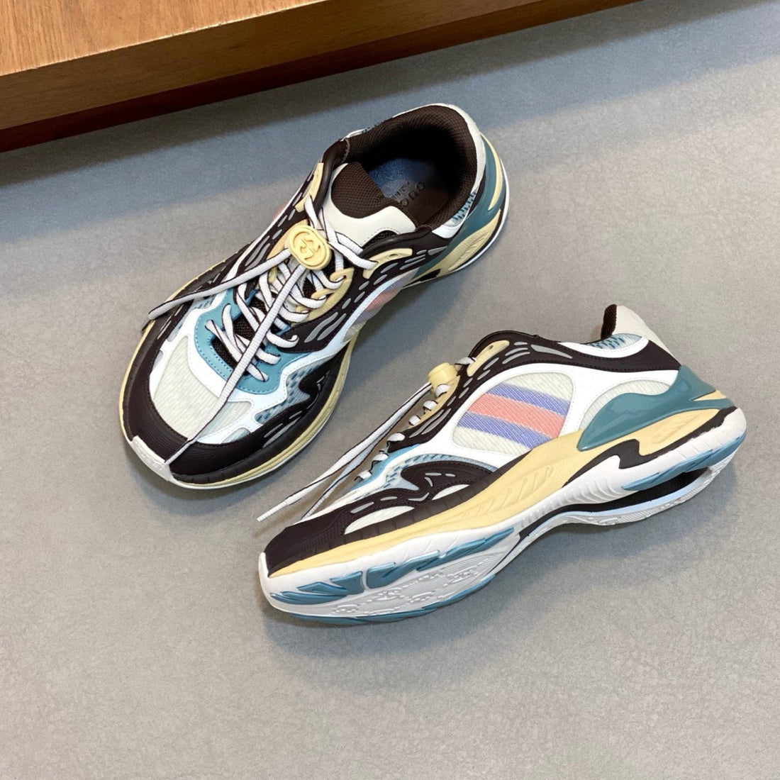 GG Men's 25 Maxi GG Lace up Sneaker Brown Black Cowhide