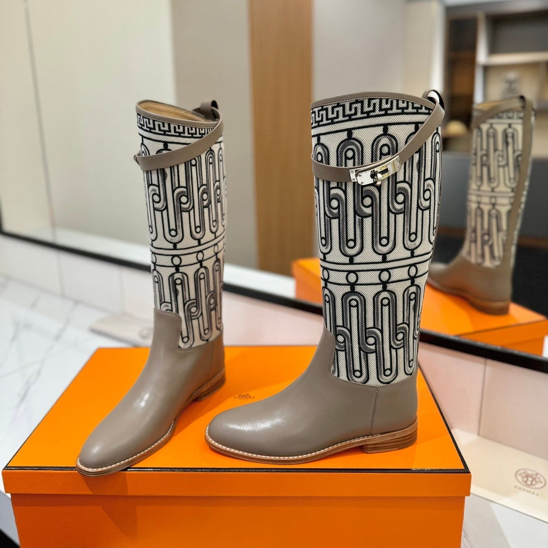 HM Jumping Boot 20MM Brown Printed Pattern Cowhide 992356