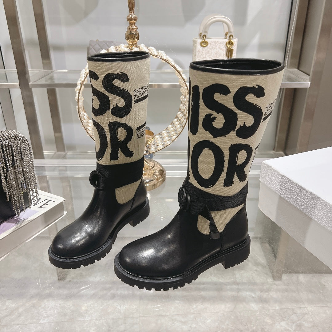 CD D-Major Boot Black Mix Beige Calfskin And Canvas