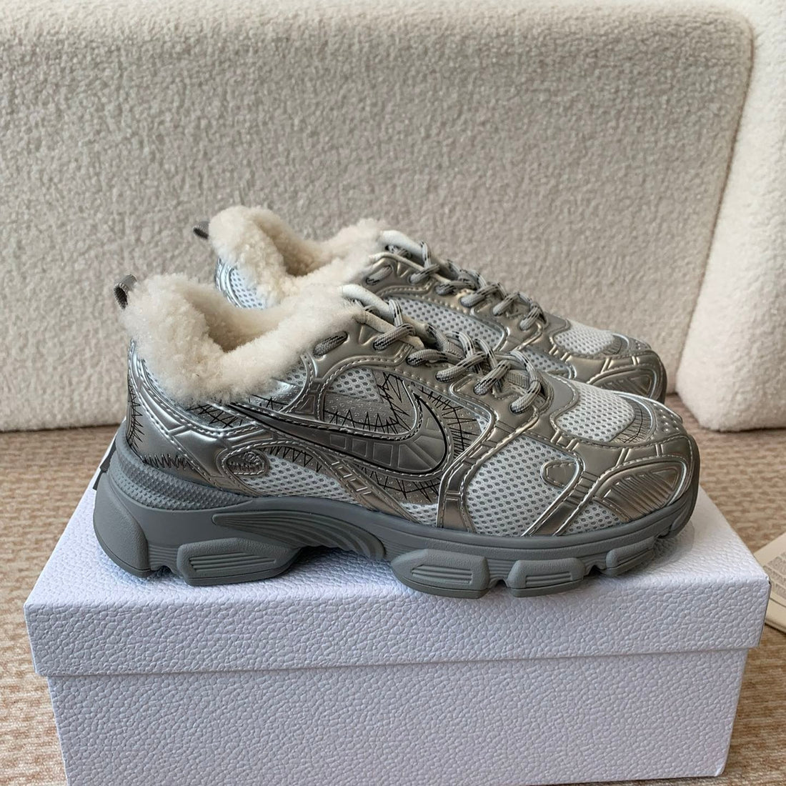 CD Dior Star Platform Sneaker In Glossy Silver Cowhide 996418