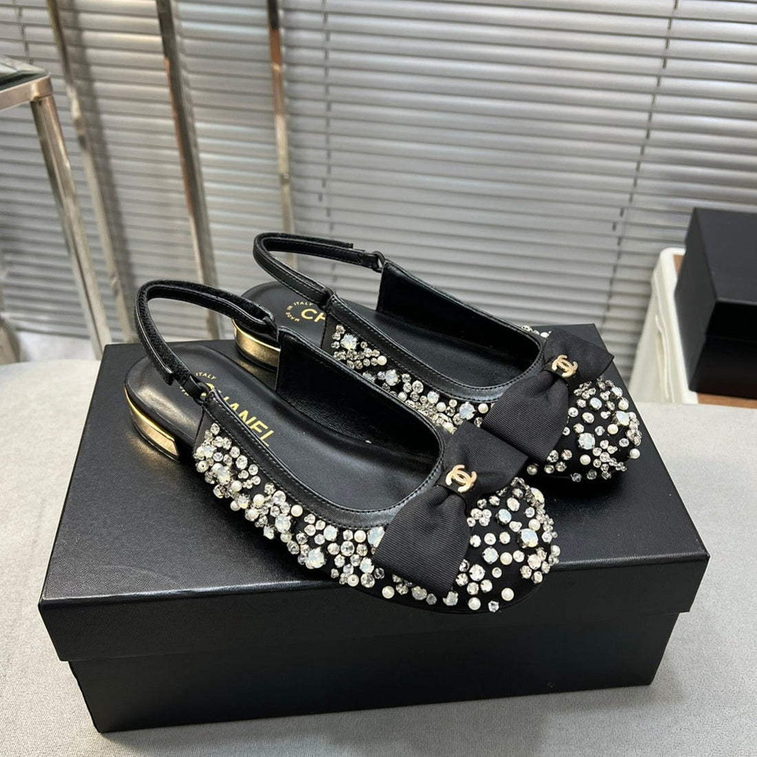 Vlogo Signature Slingback Gold Calfskin Diamond Hardware