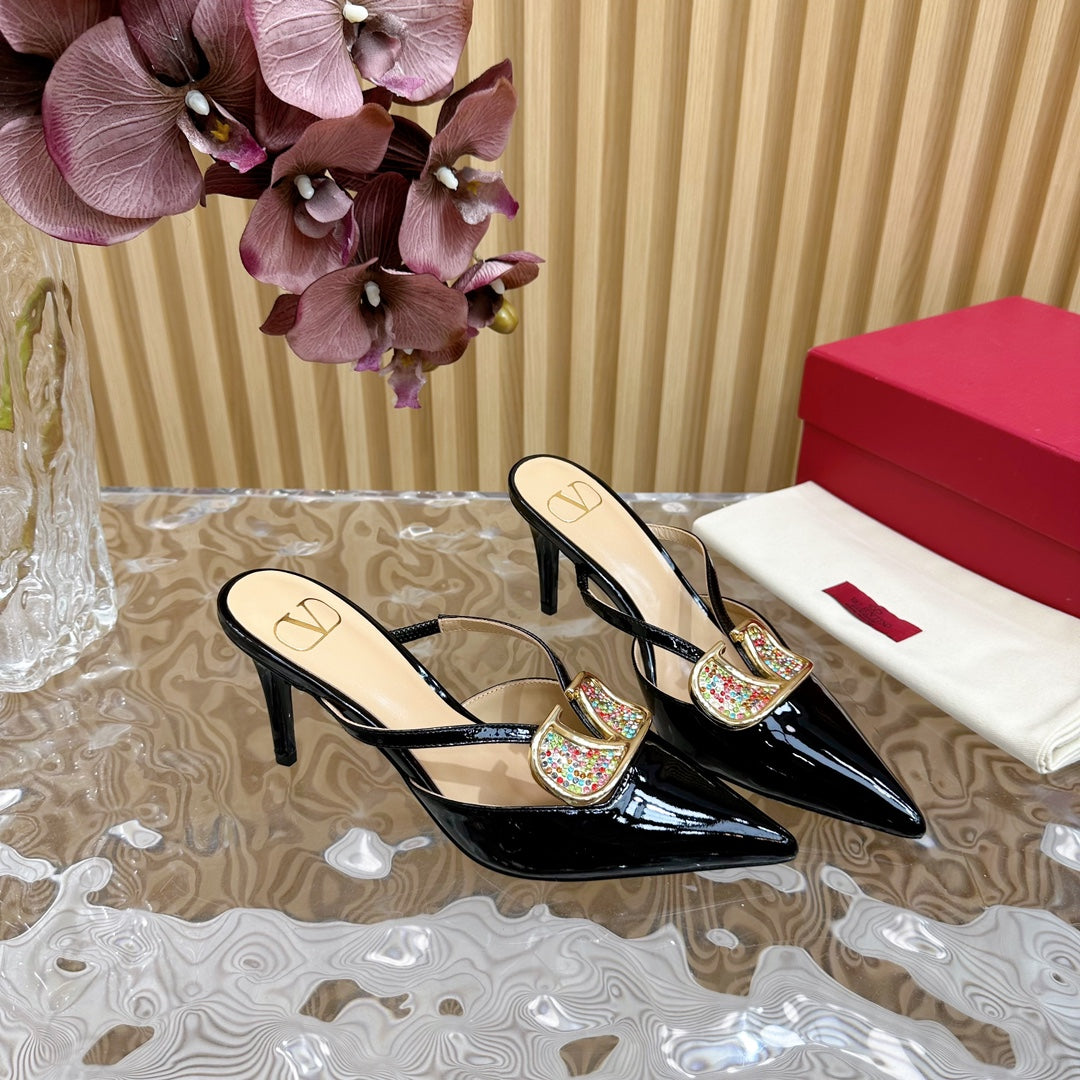 Vlogo Signature with Crystals Cut-Out Slingback Pump 70 Black Beige Calfskin