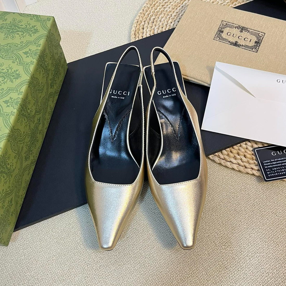 GG Women's G plain leather logo Slingbacks Golden