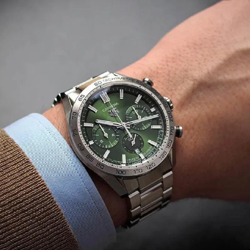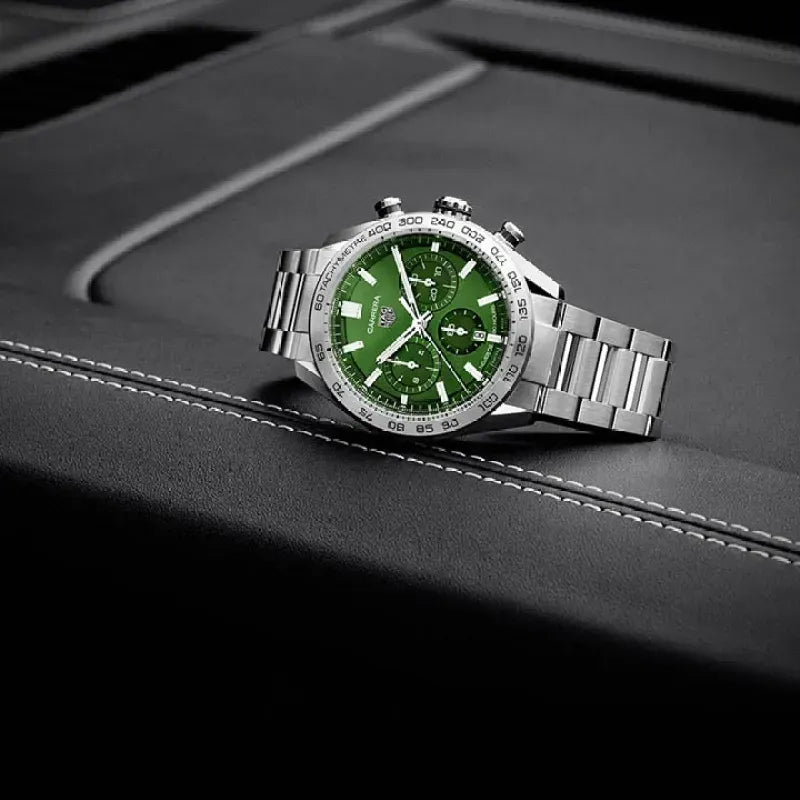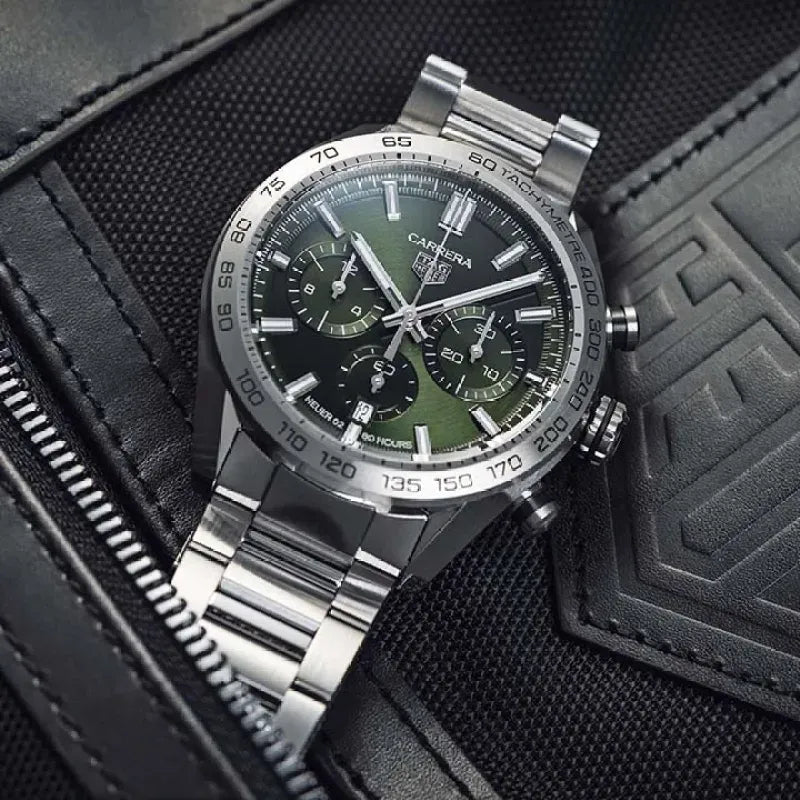 Powered by our in-house Heuer 02 movement, an automatic column-wheel chronograph movement – signatures of improved chronograph timekeeping and high-quality manufacture movements - with 80-hour power reserve.