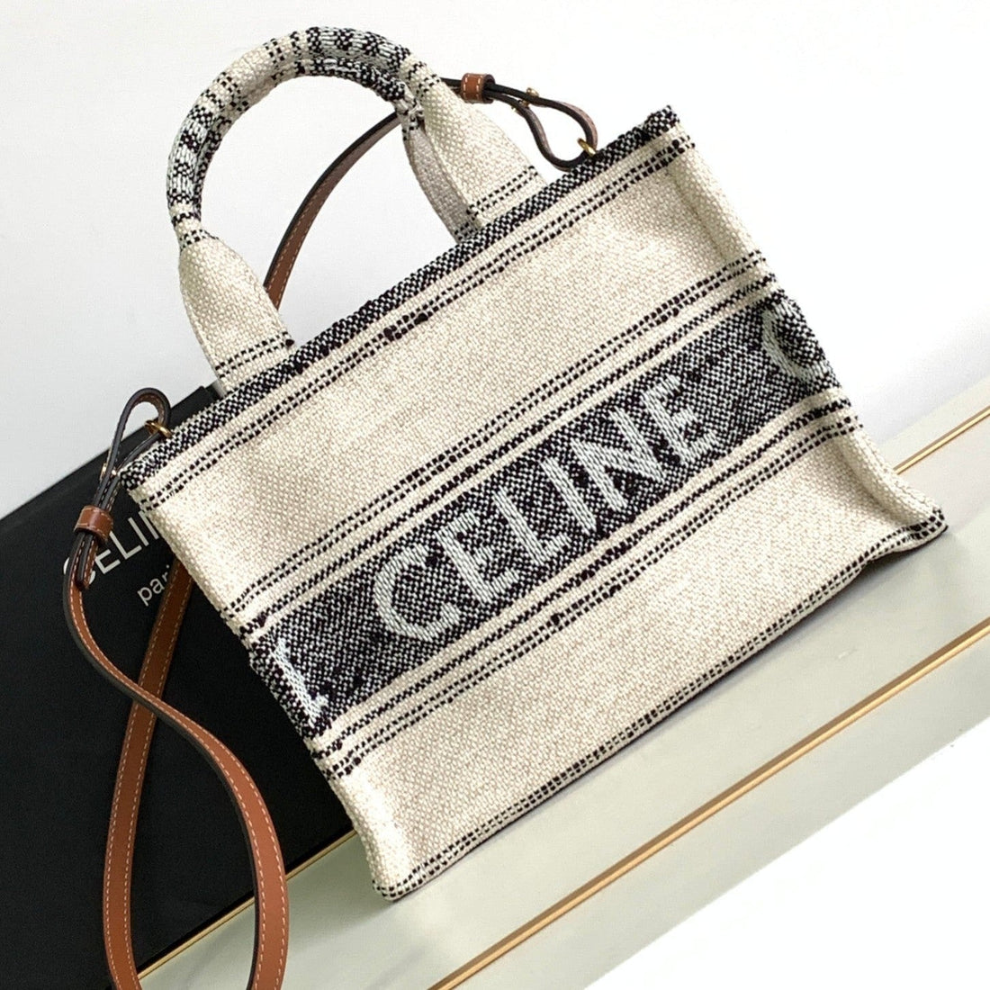 SMALL CABAS THAIS 25.5 CREAM STRIPED FABRIC TRIOMPHE CALFSKIN