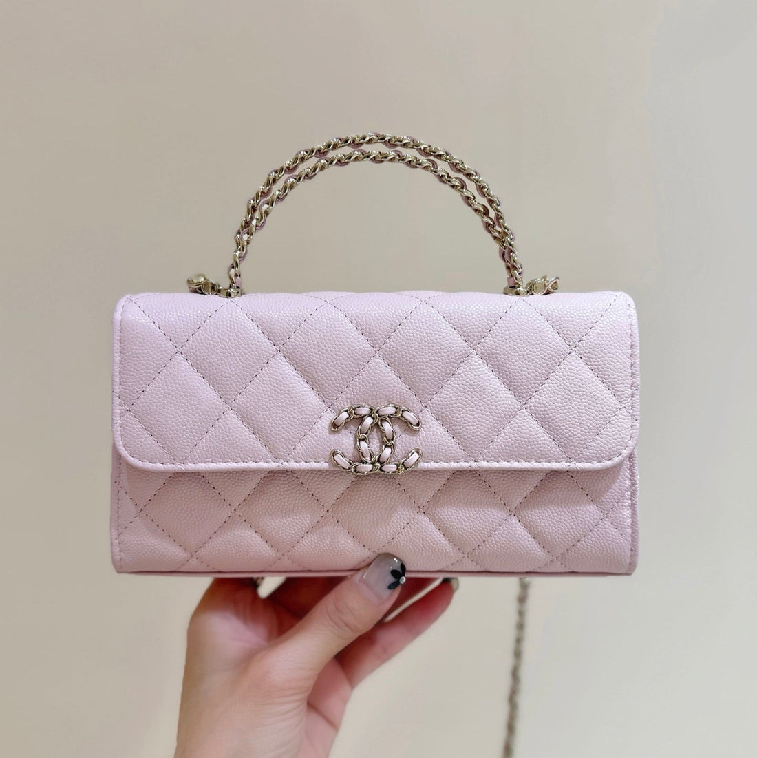 cc 25S Woc Top Handle 19cm Pink Grained Calfskin Light Gold Hardware
