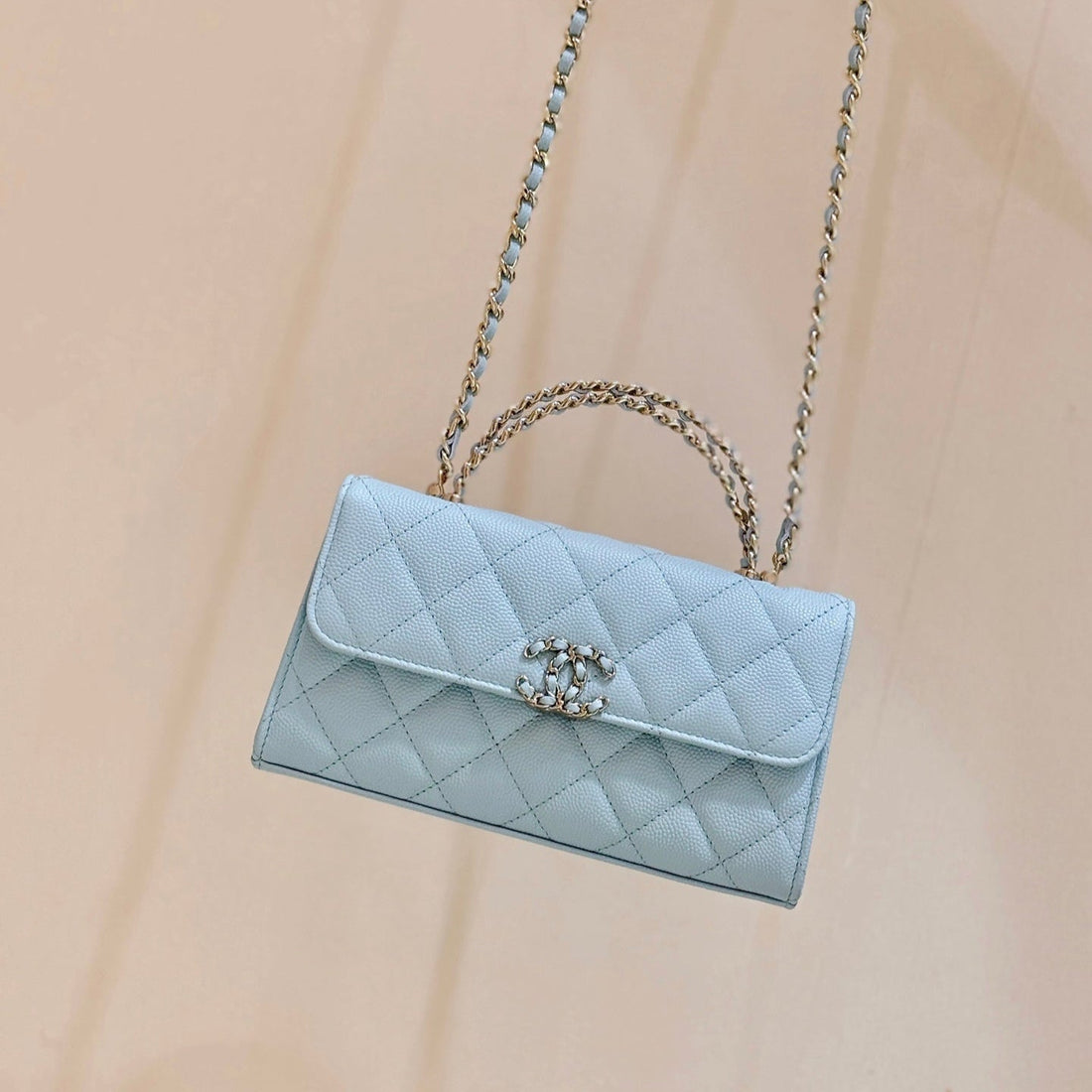 cc 25S Woc Top Handle 19cm Cloud Blue Grained Calfskin Light Gold Hardware