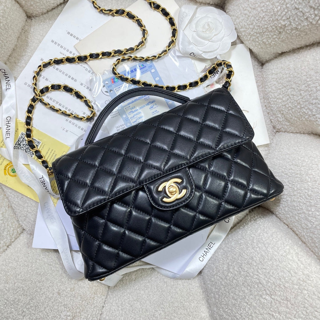 CC 25P Mini Flap Bag 20cm Top Handle Black Calfskin Gold Hardware