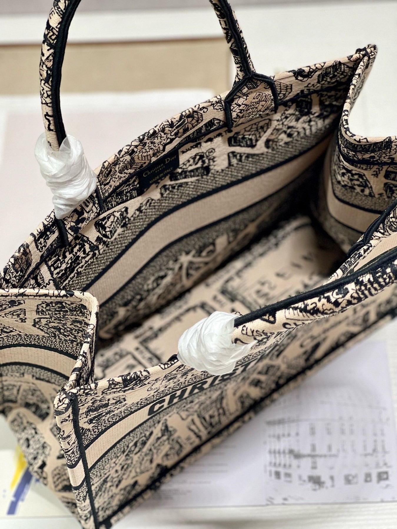 CD Paris Apricot Book Tote 36cm Bag Black beige Canvas 336525