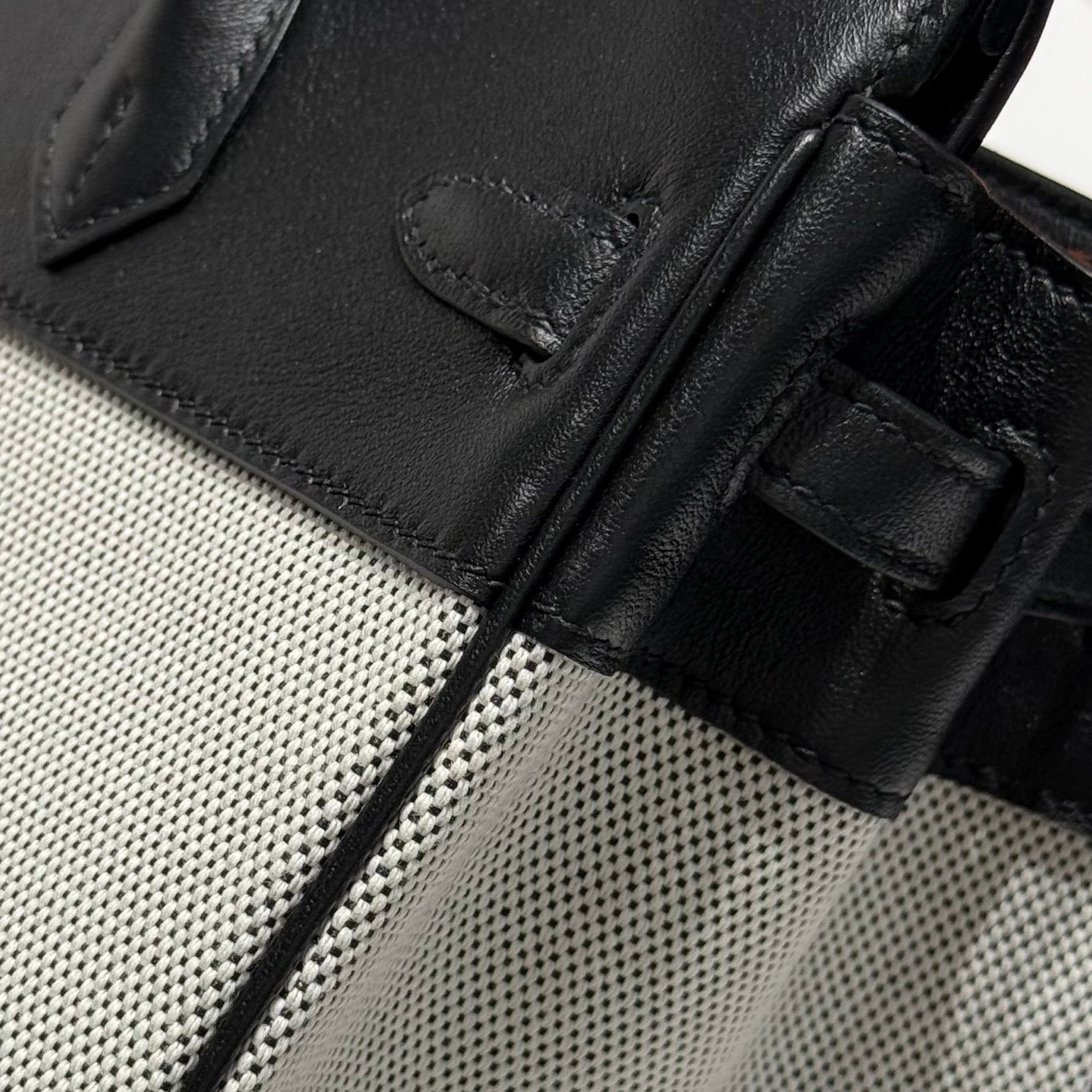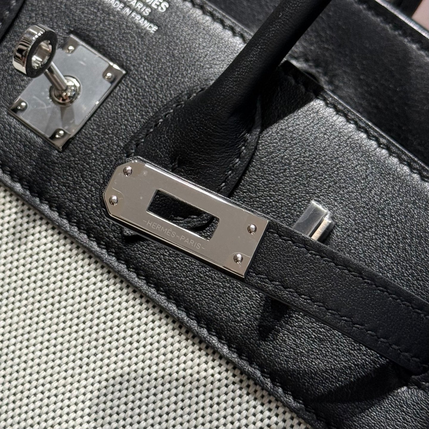 HM Birkin 25cm Black Swift Grey Canvas Silver Hardware