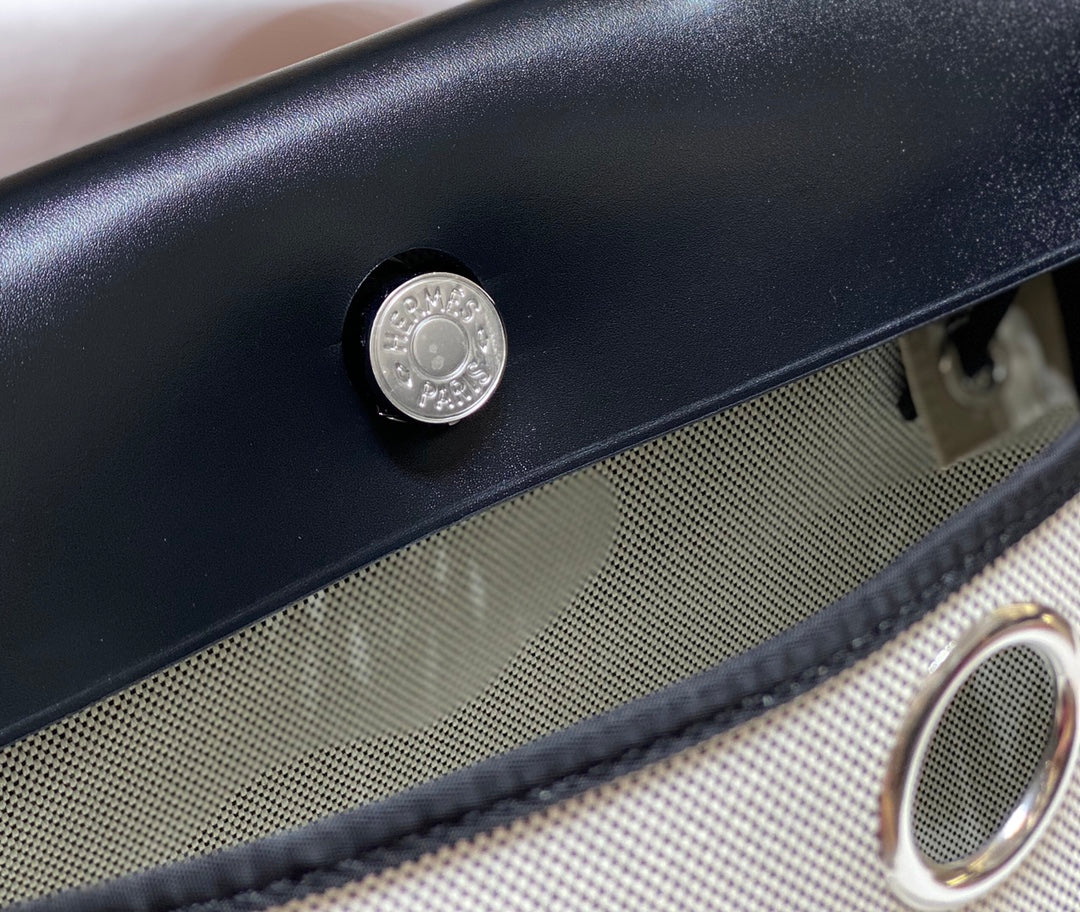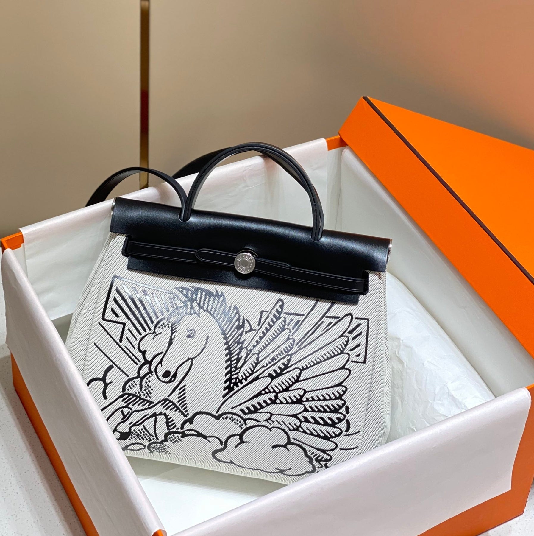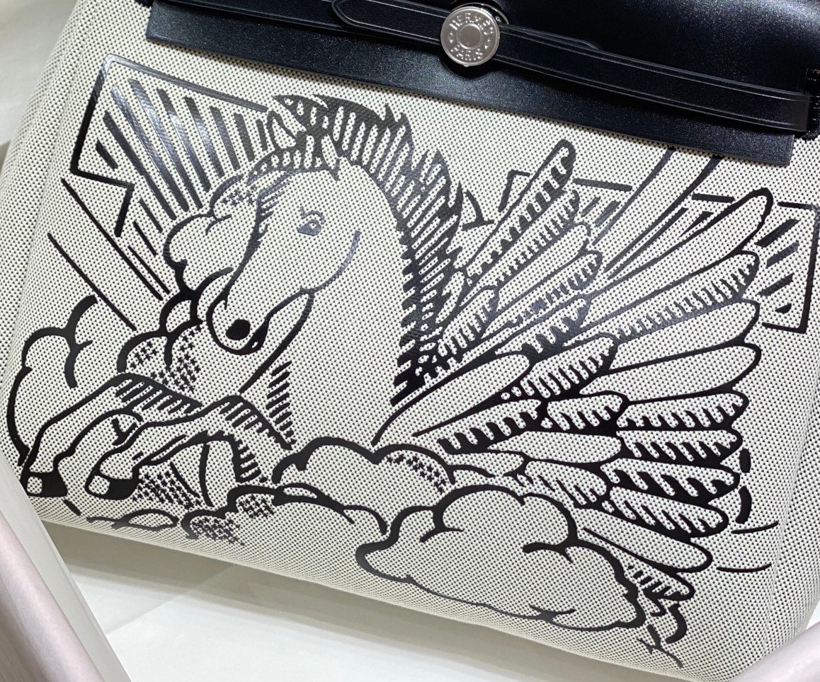 HM Pegase Pop Herbag Zip 31 White Black Canvas Black Cowhide Leather