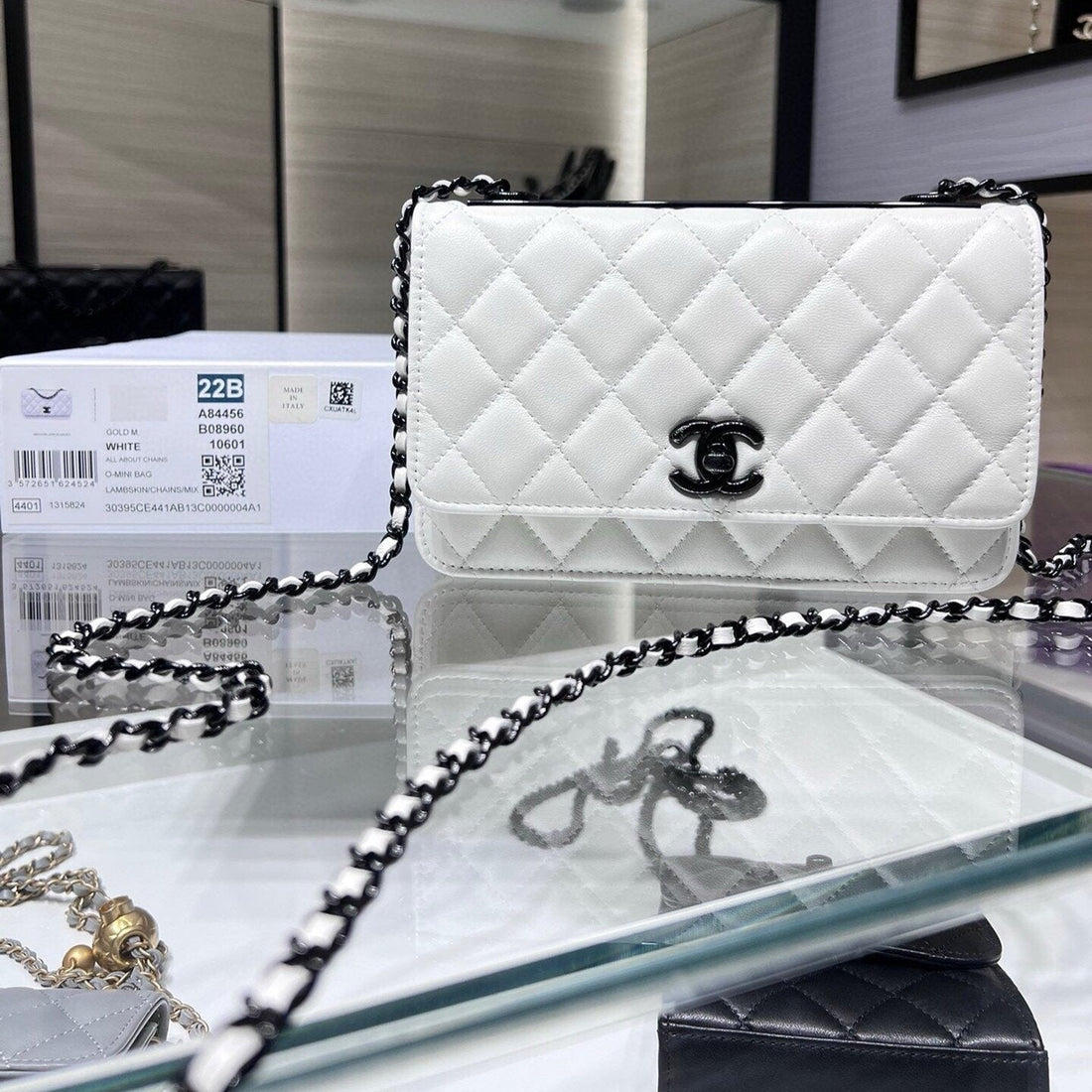 CC WOC 19 WHITE LAMBSKIN BLACK HARDWARE