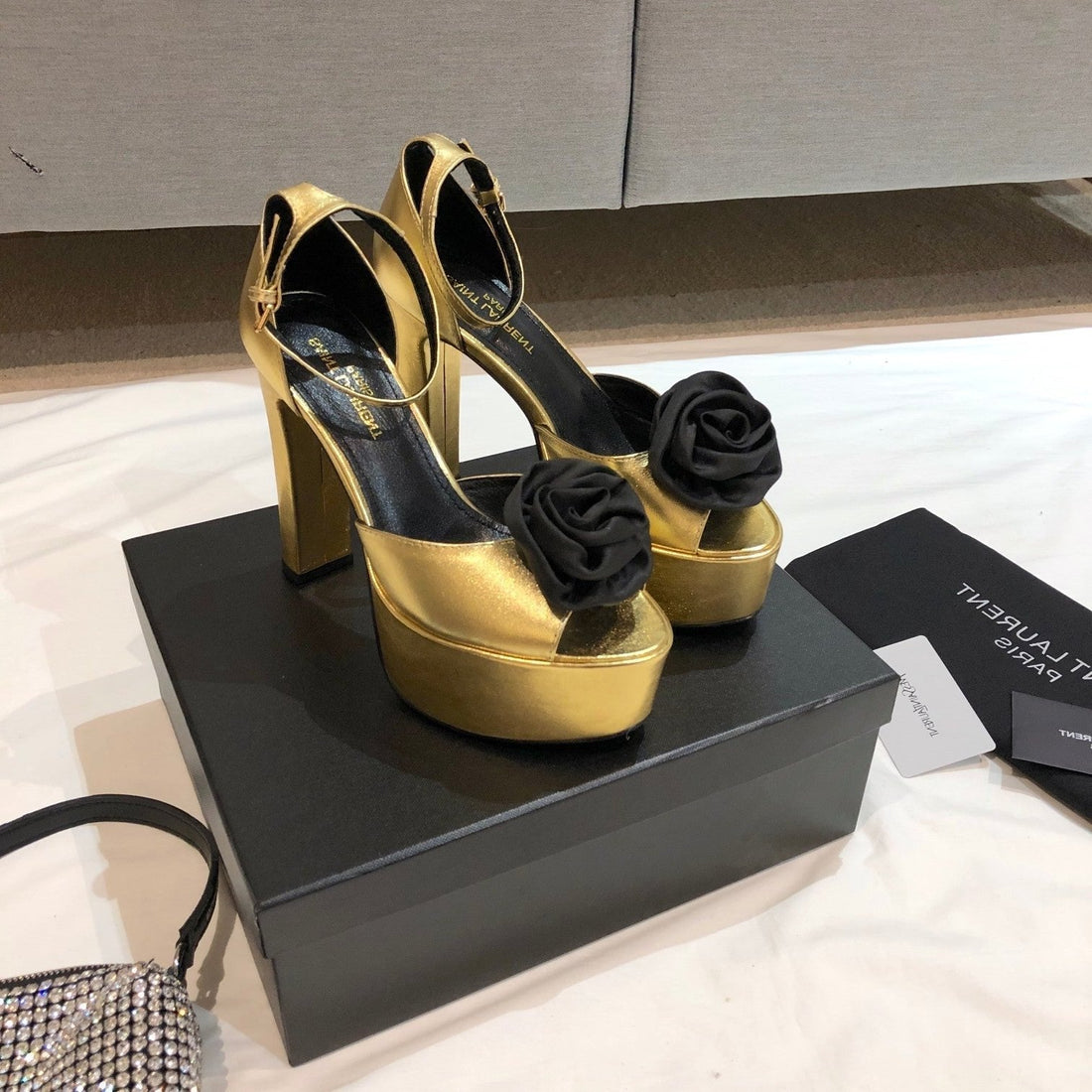 SL IVY FLORAL 135 PLATFORM SANDAL GOLD CALFSKIN