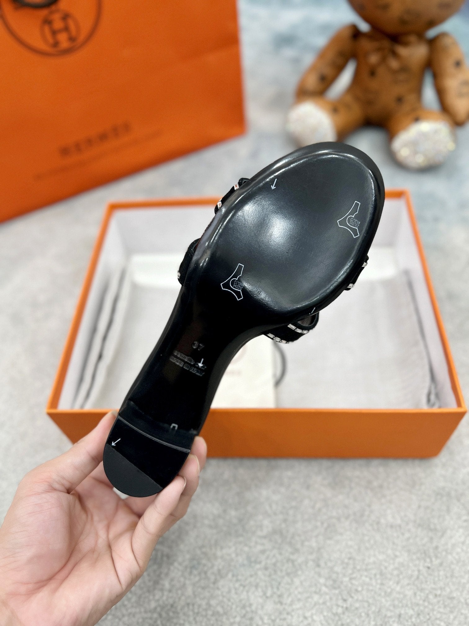 - Material: Sandal in calfskin with iconic "H" cut-out.