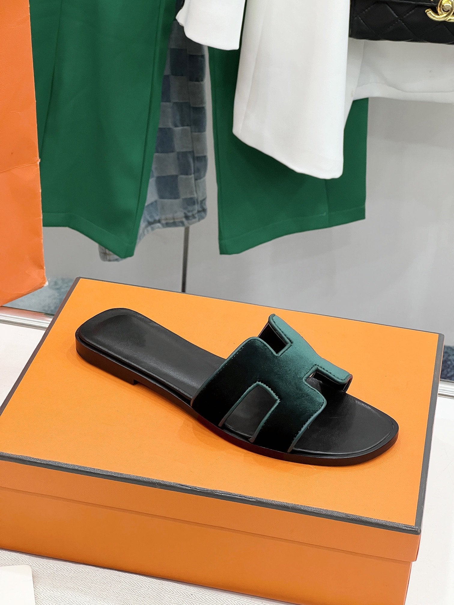 - Material: Sandal in velvet goatskin with iconic "H" cut-out.