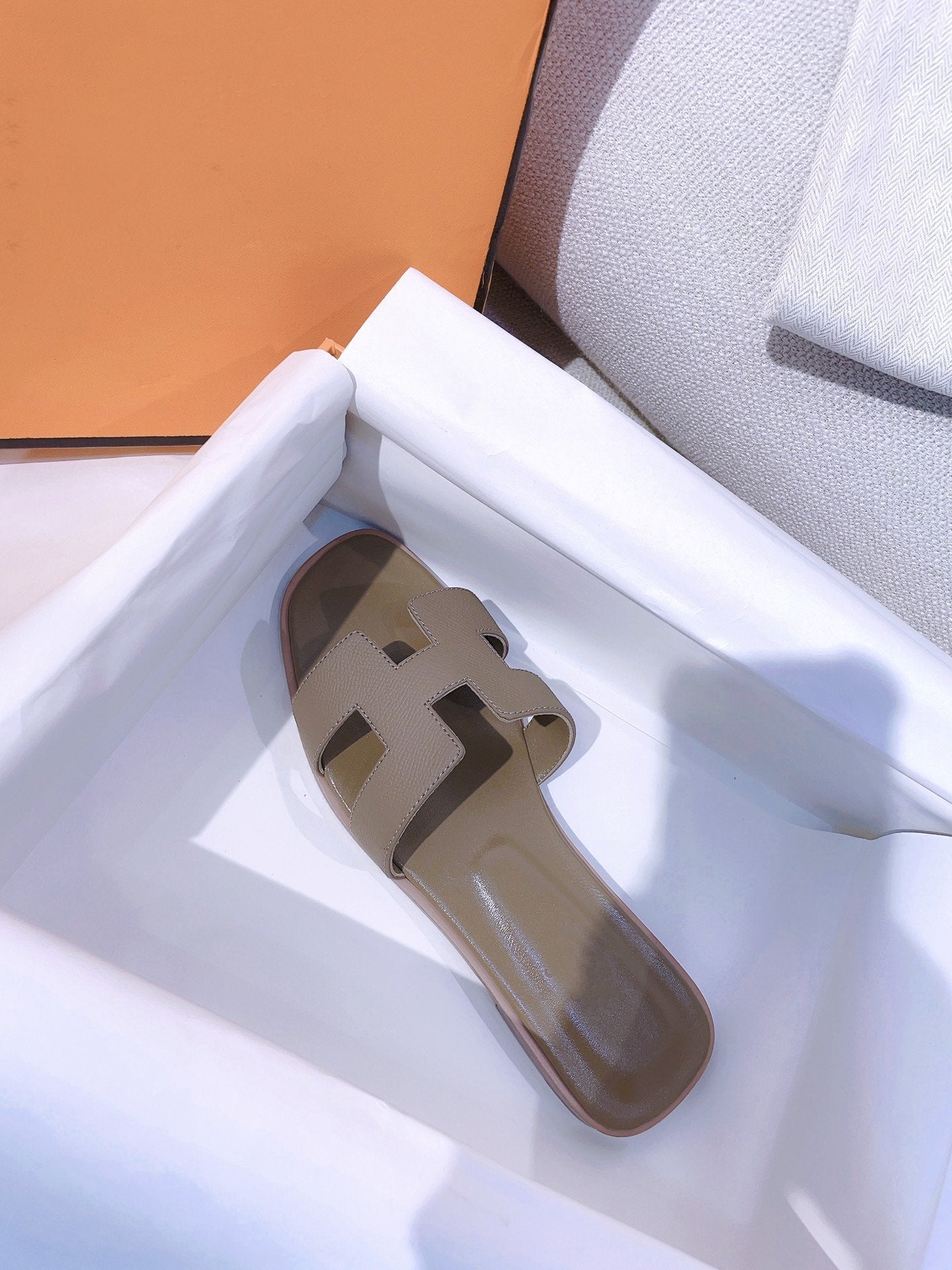 - Material: Sandal in calfskin with iconic "H" cut-out.