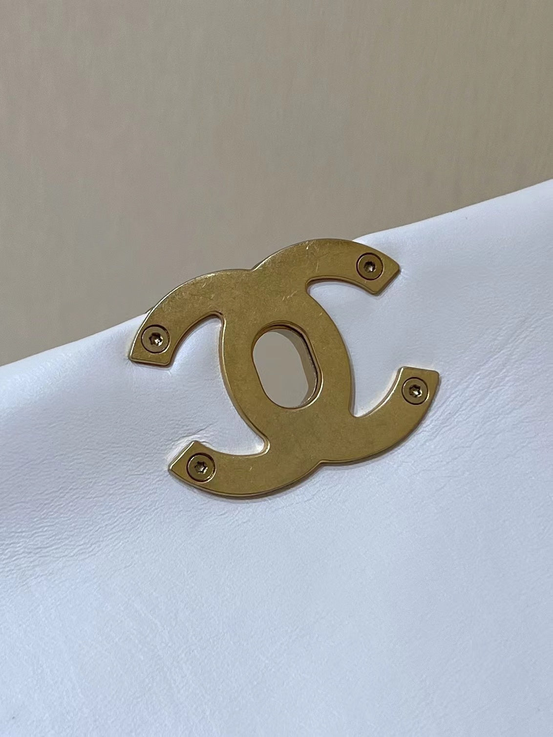 19 FLAP BAG 20 WHITE BODIN CALFSKIN GOLD HARDWARE