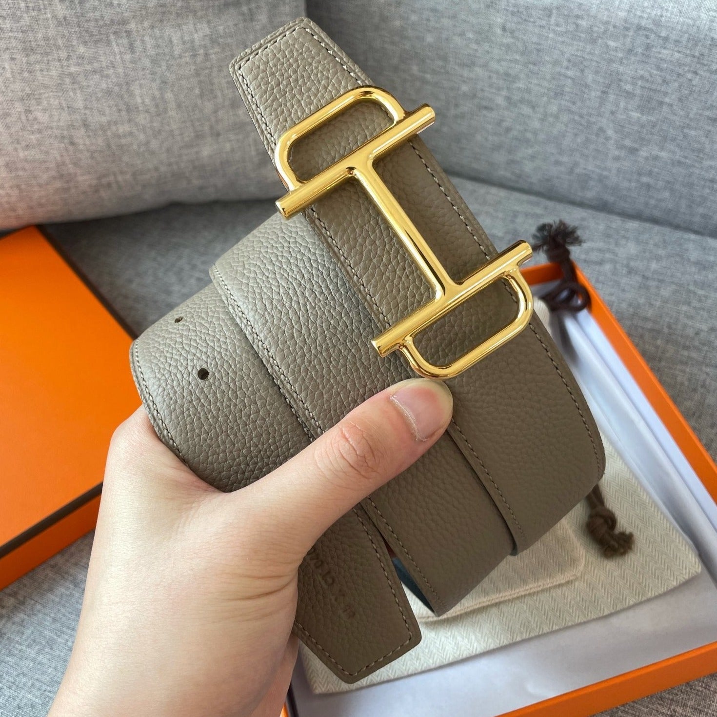 3.8CM BELT H REVERSIBLE BLACK GREY LEATHER