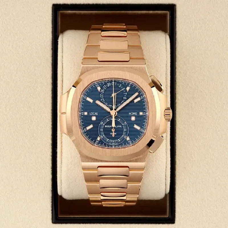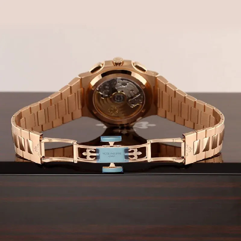 With its rounded octagonal bezel, its ingeniously unique porthole-structured case and its dial embossed with horizontal stripes, the Nautilus has perfectly exemplified the elegance of a sports watch since its introduction in 1976.