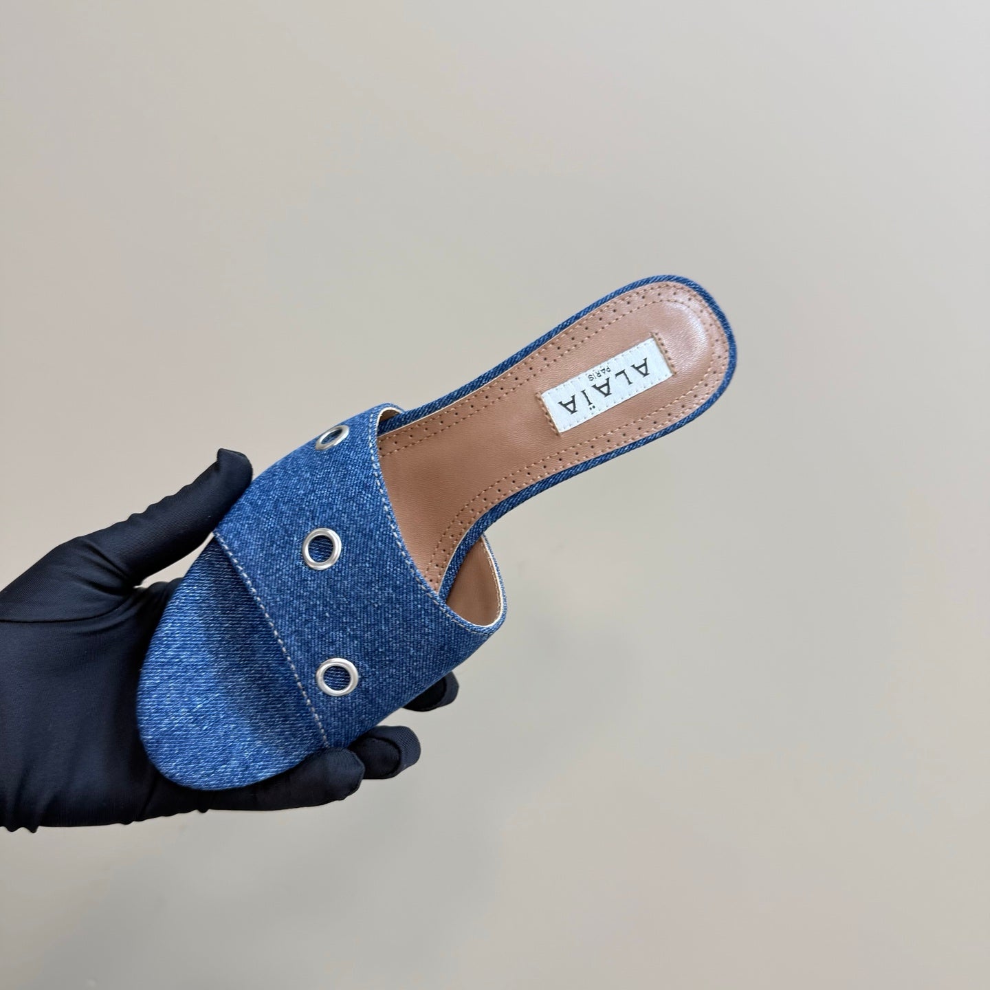 Alaia 2025 Oeillets Embellished Leather Sandals Denim Lambskin 299670