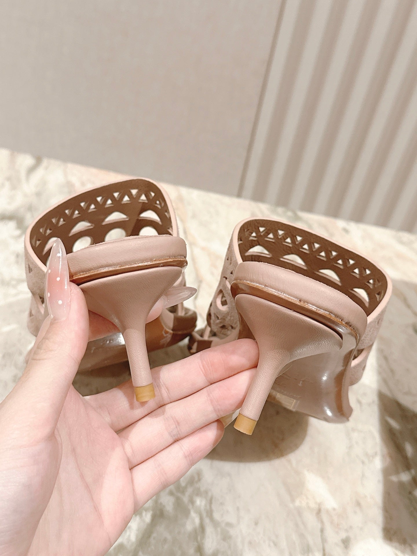 Alaia 2025 Vienne Cutout Kitten-Heel Slide Sandals Pink Leather 293651