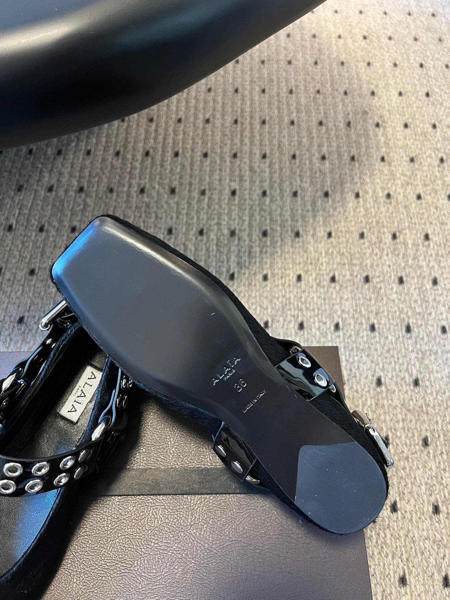 Alaia 25 Biker Ballet Flats Black Horsehair Sheepskin 303729