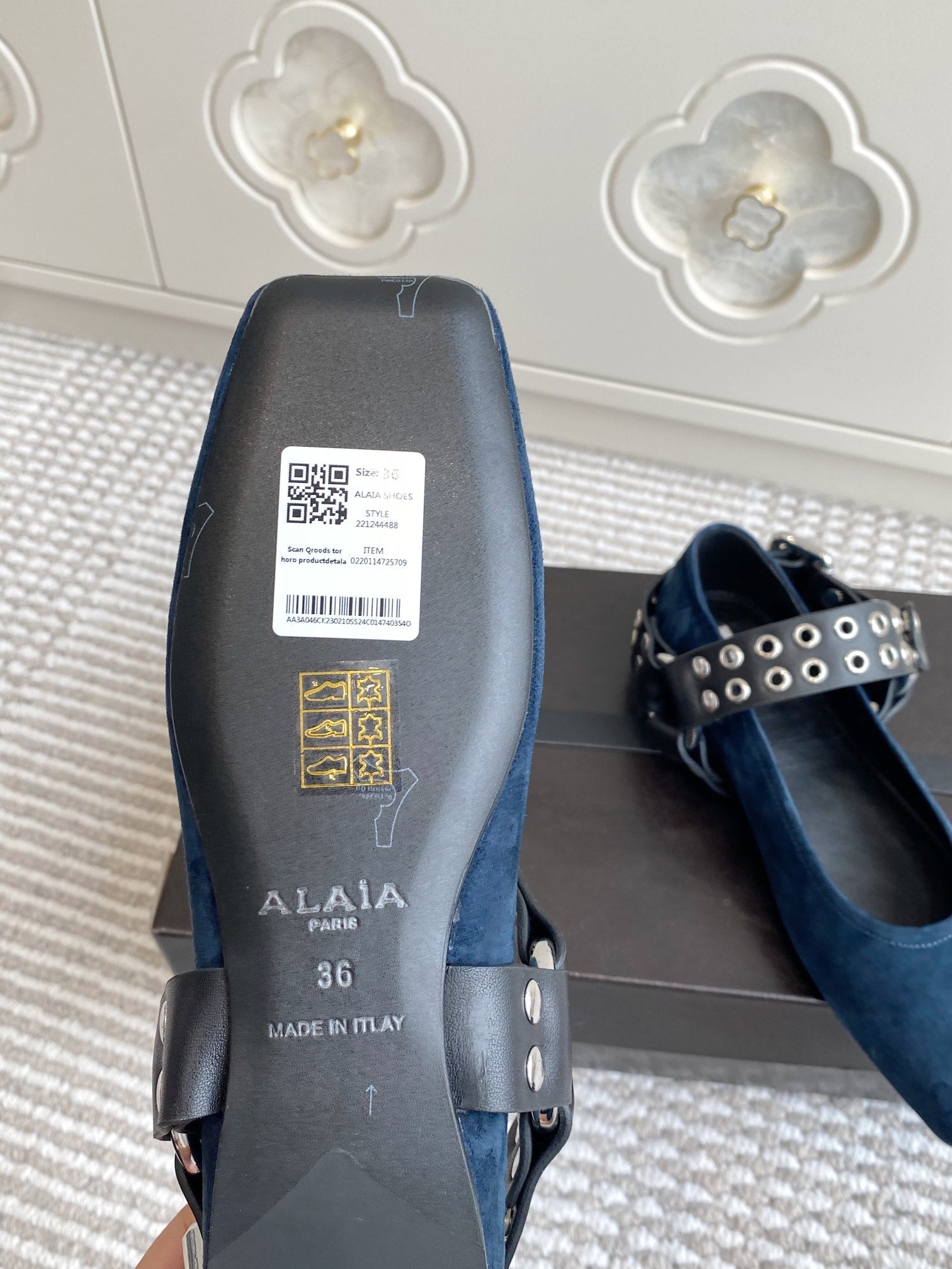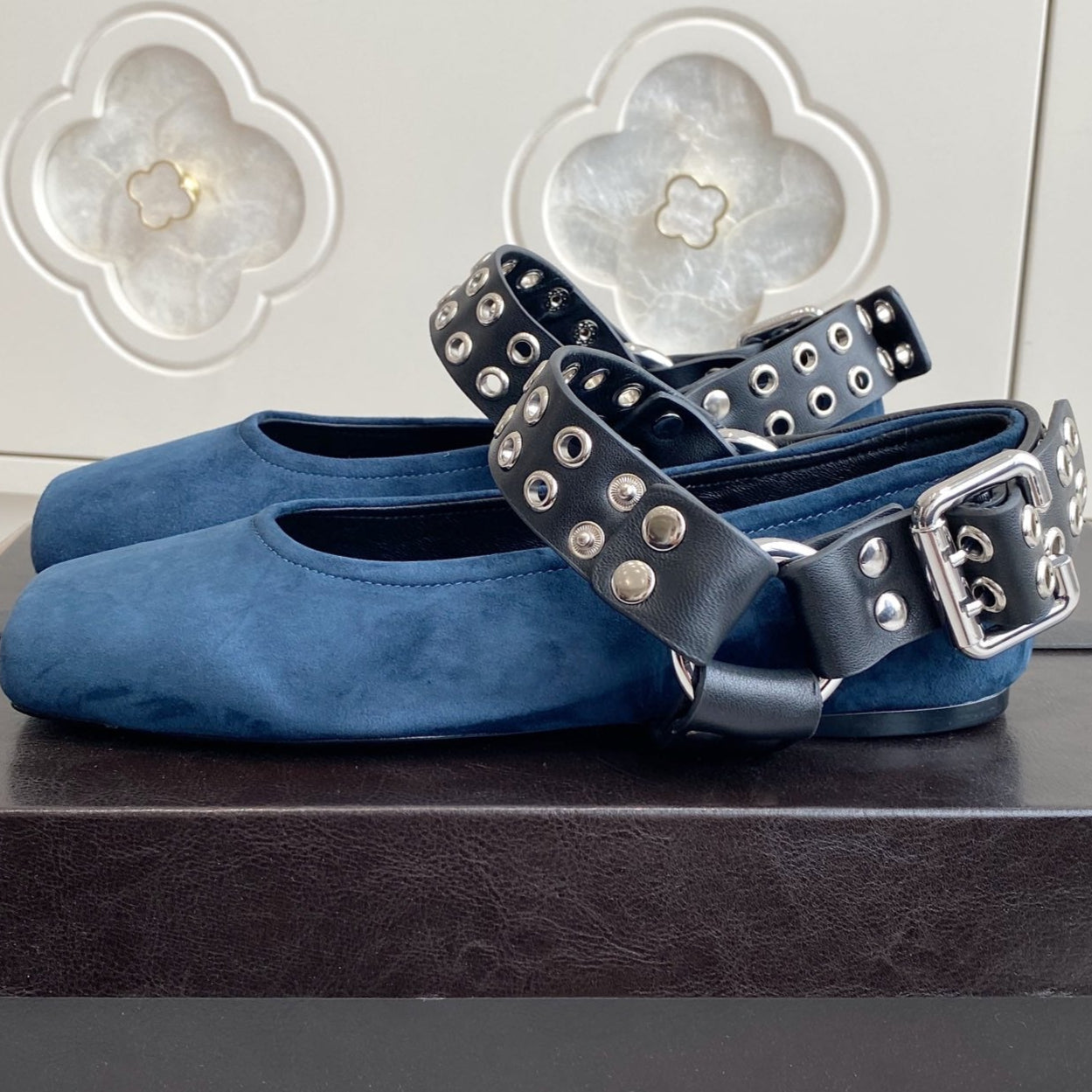Alaia 25 Biker Ballet Flats Blue Suede 291056