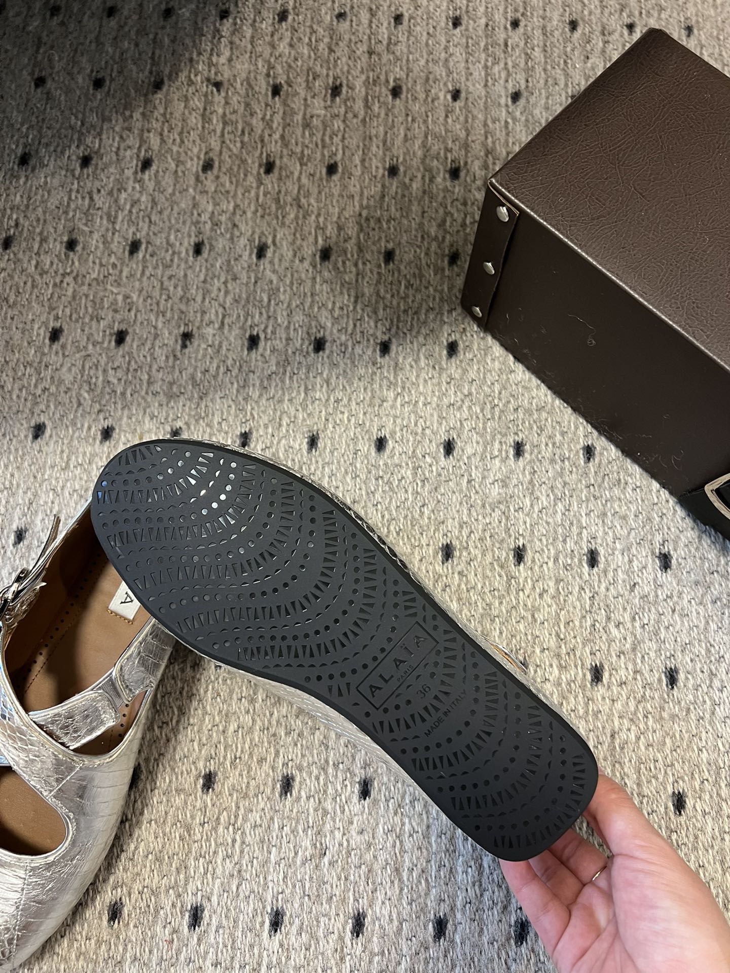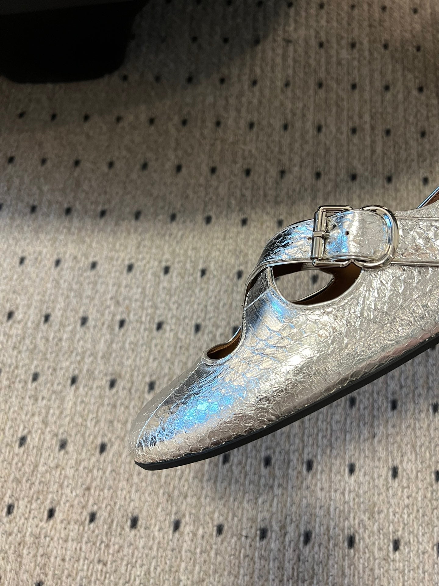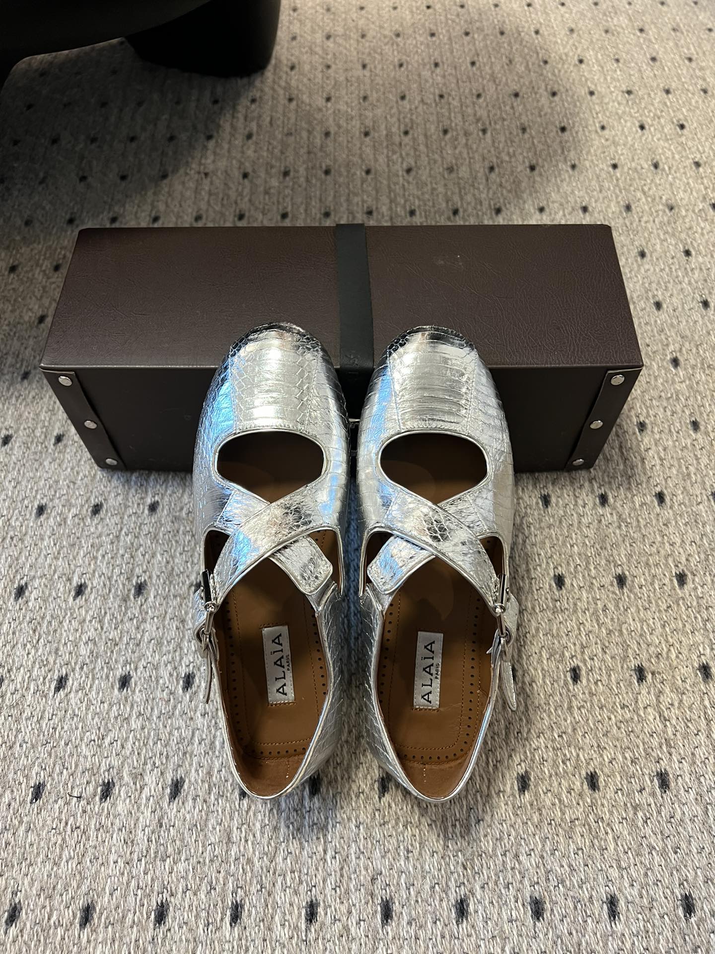 Alaia 25 Criss Cross With Stud Ballet Flats Silver Sheepskin 303696