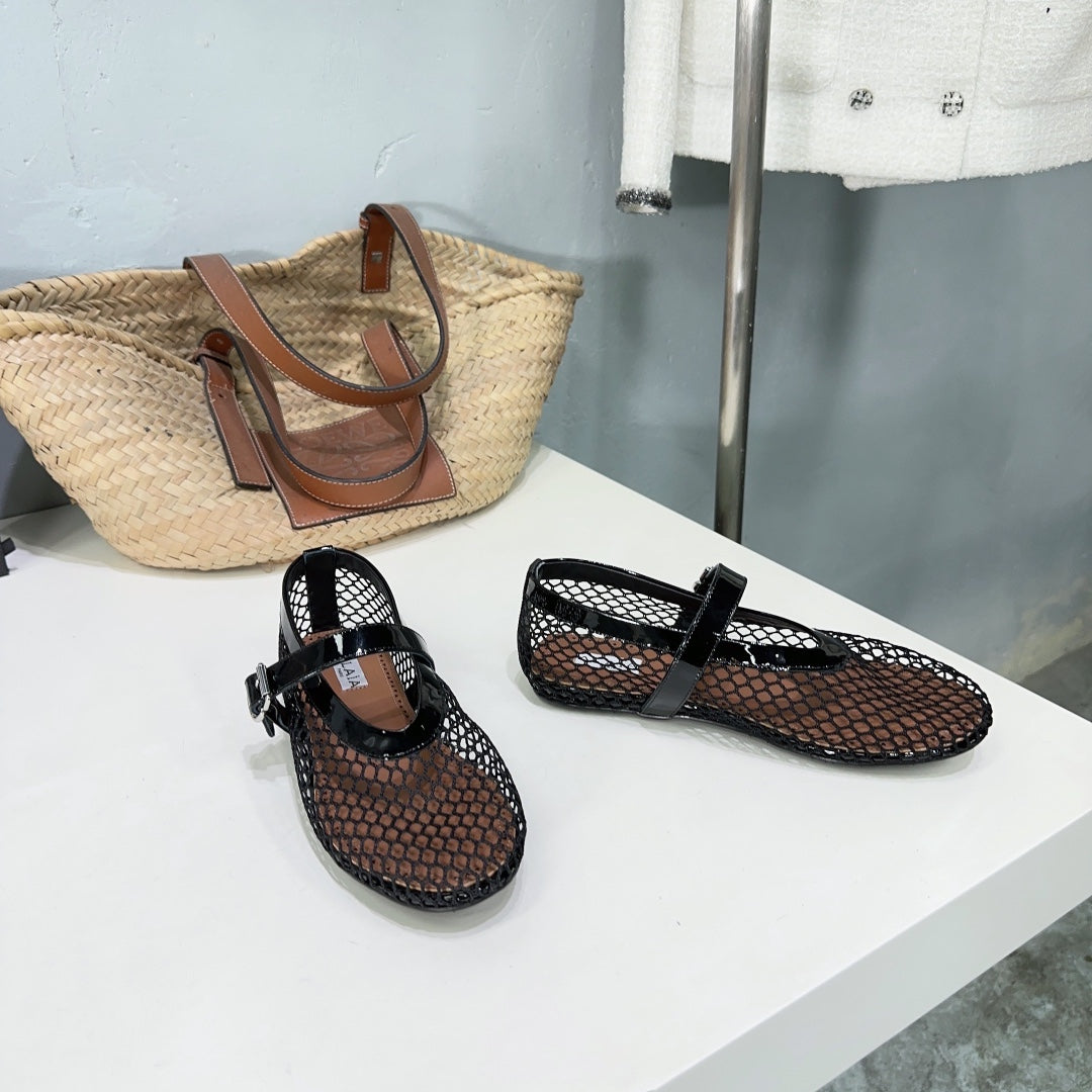 Alaia 25 Laminated Fishnet Ballet Flats Black Lambskin 576444