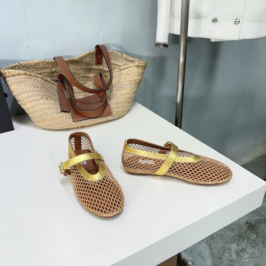 Alaia 25 Laminated Fishnet Ballet Flats Gold Lambskin 576441
