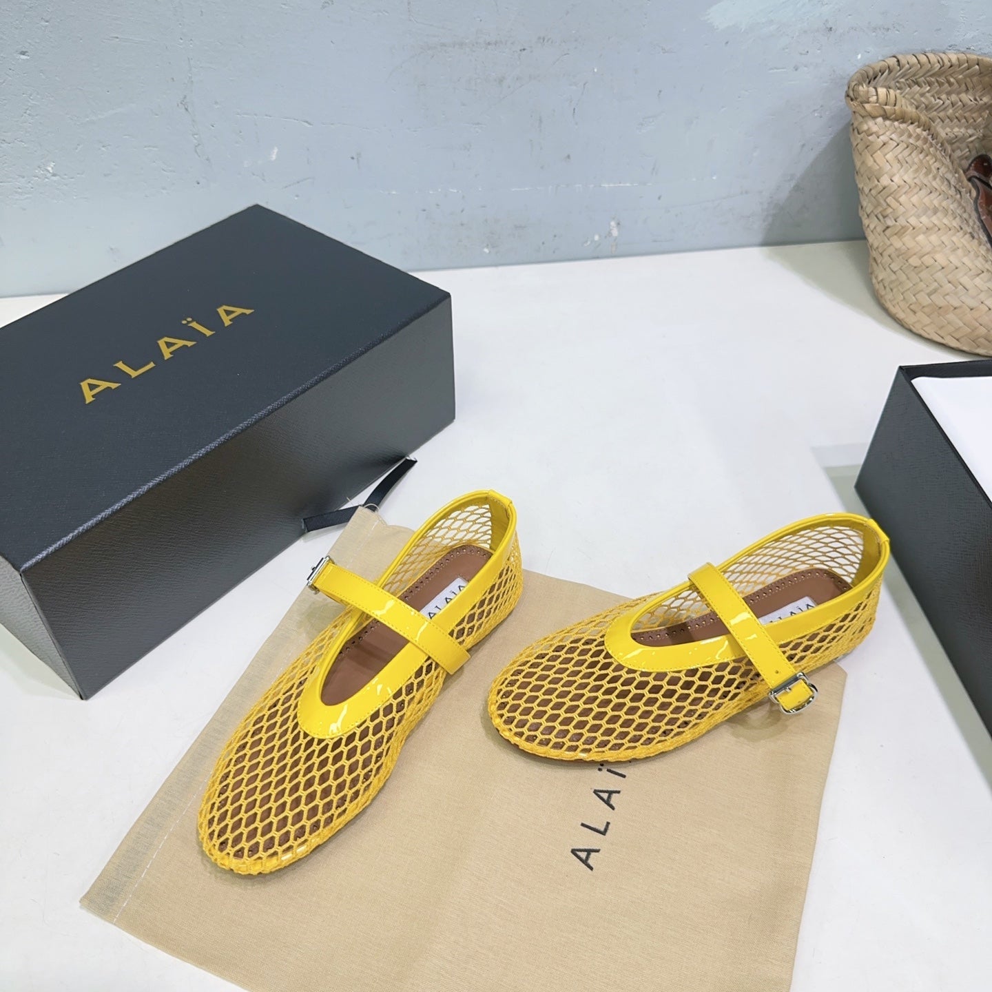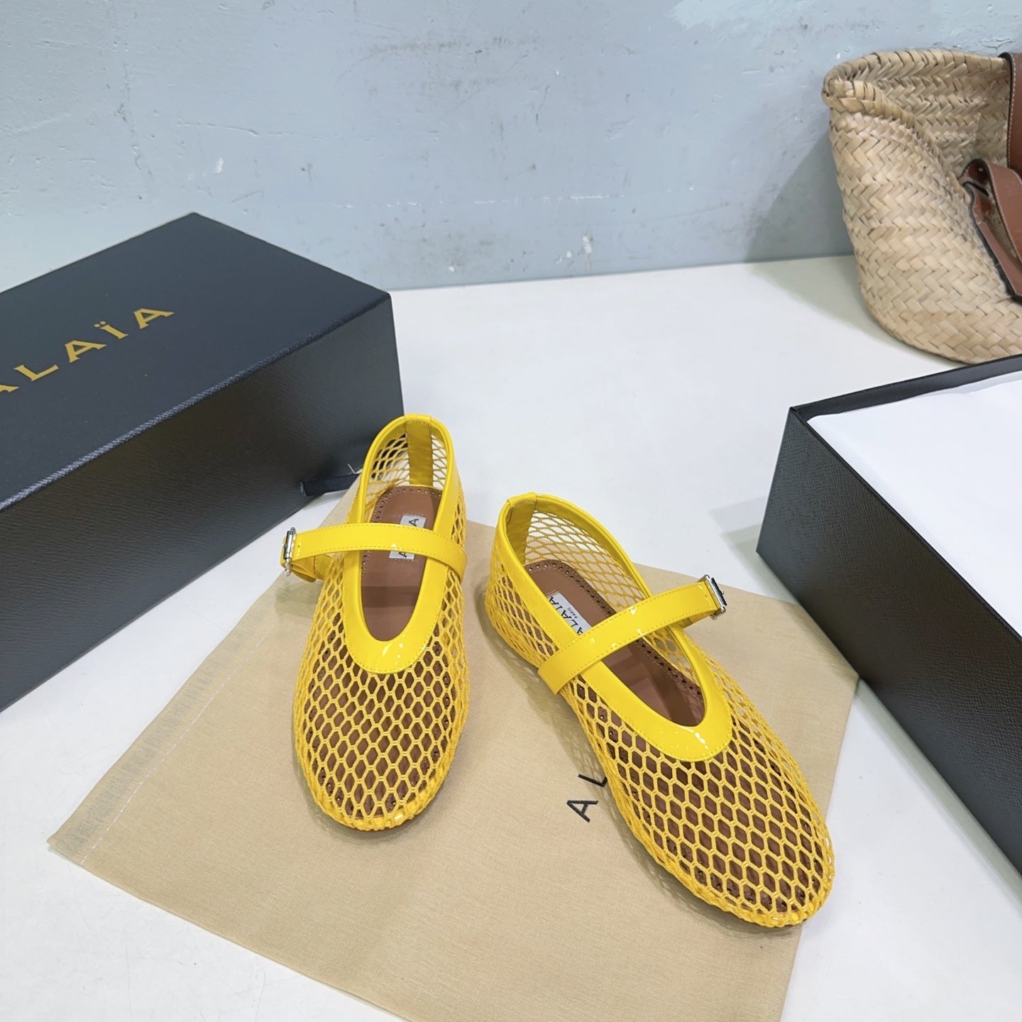 Alaia 25 Laminated Fishnet Ballet Flats Yellow Lambskin 300470
