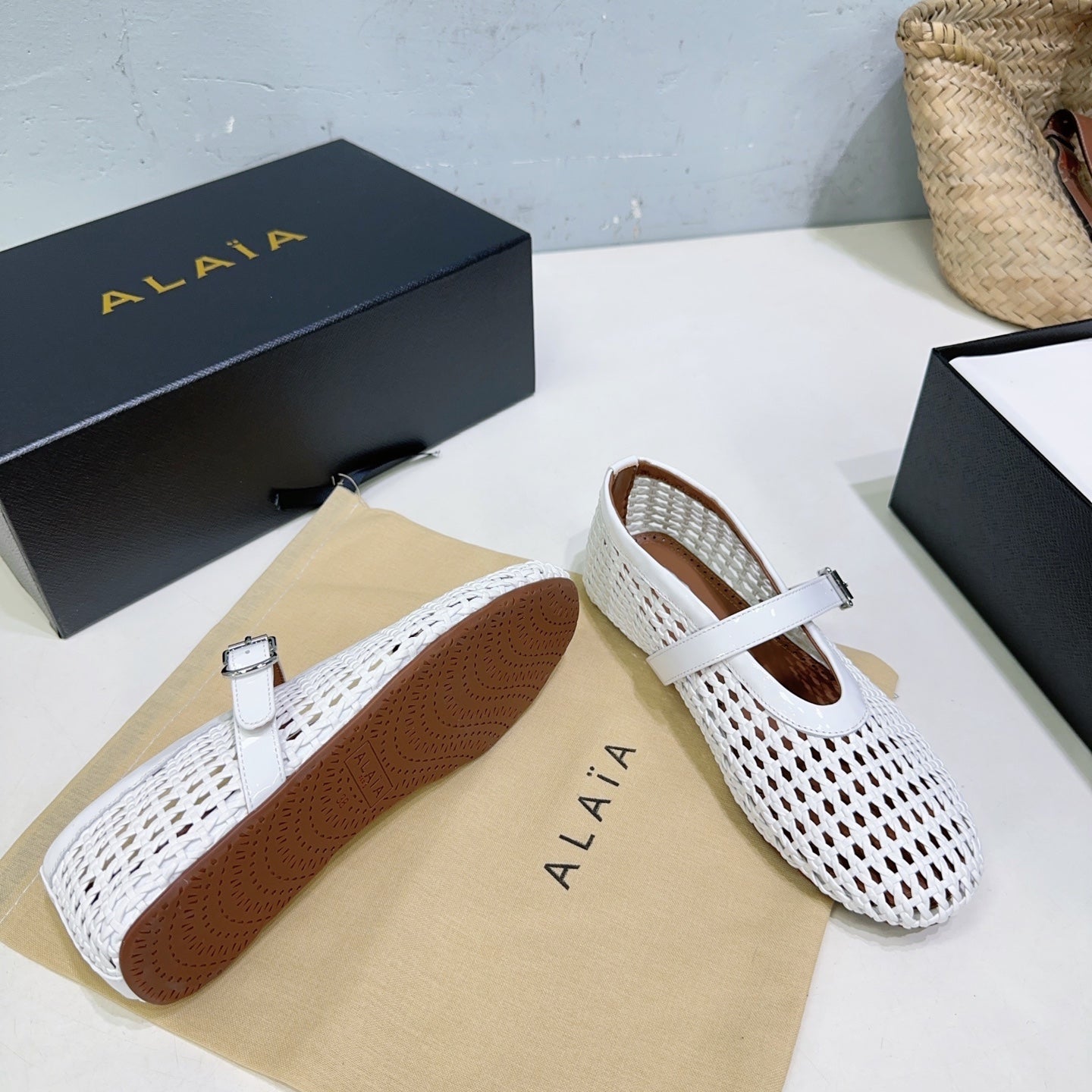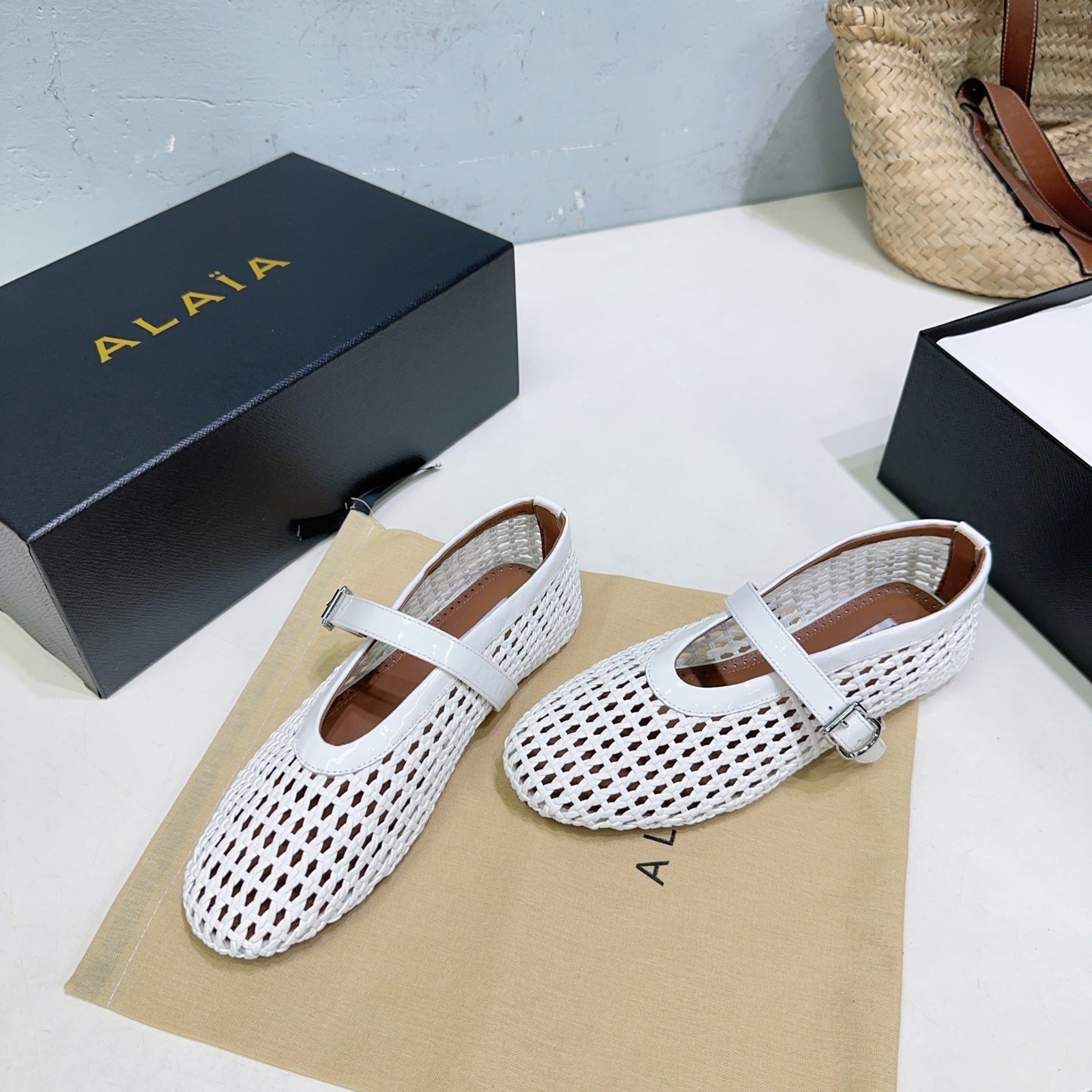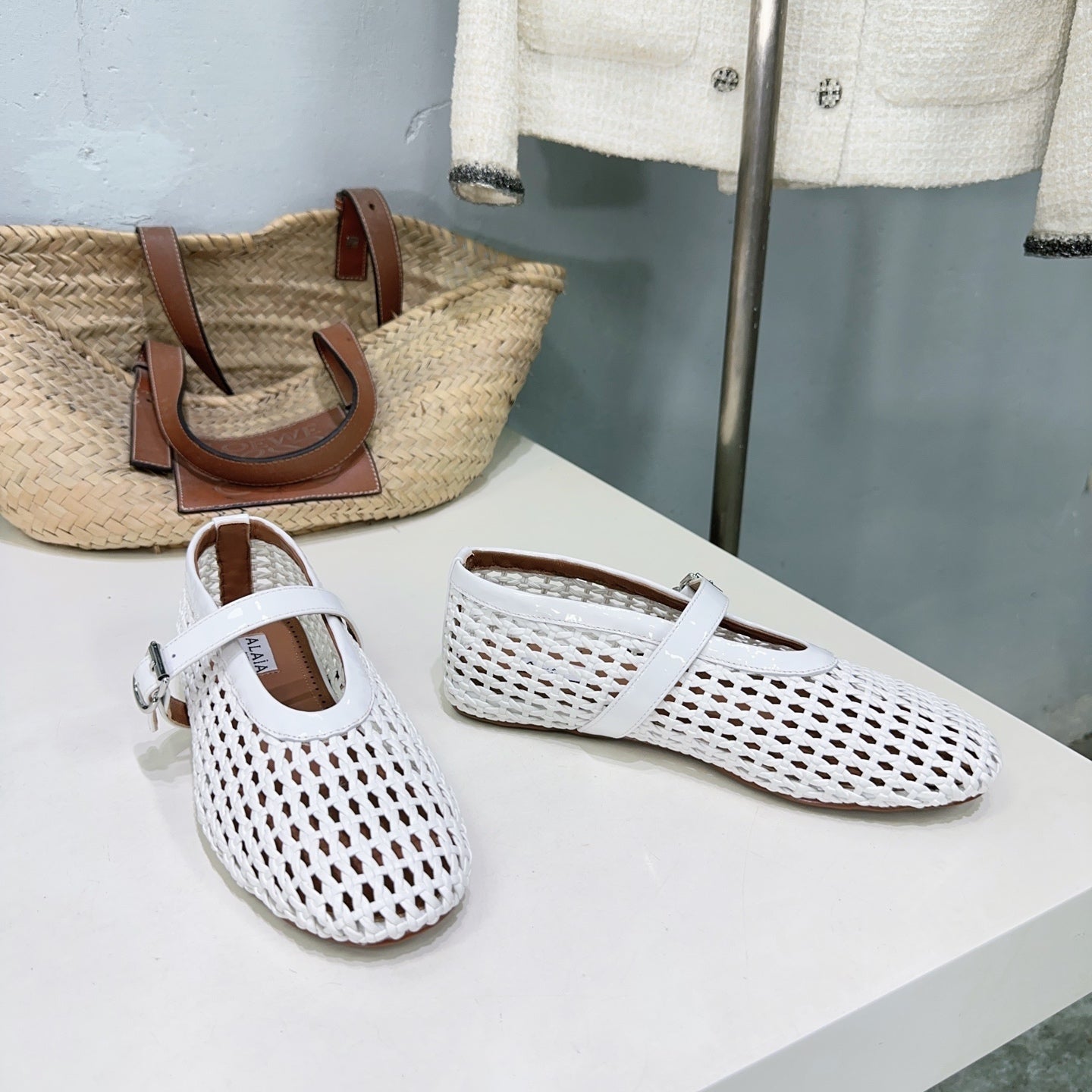 Alaia 25 Marry Janes Ballet Flats White Wool Sheepskin 300455